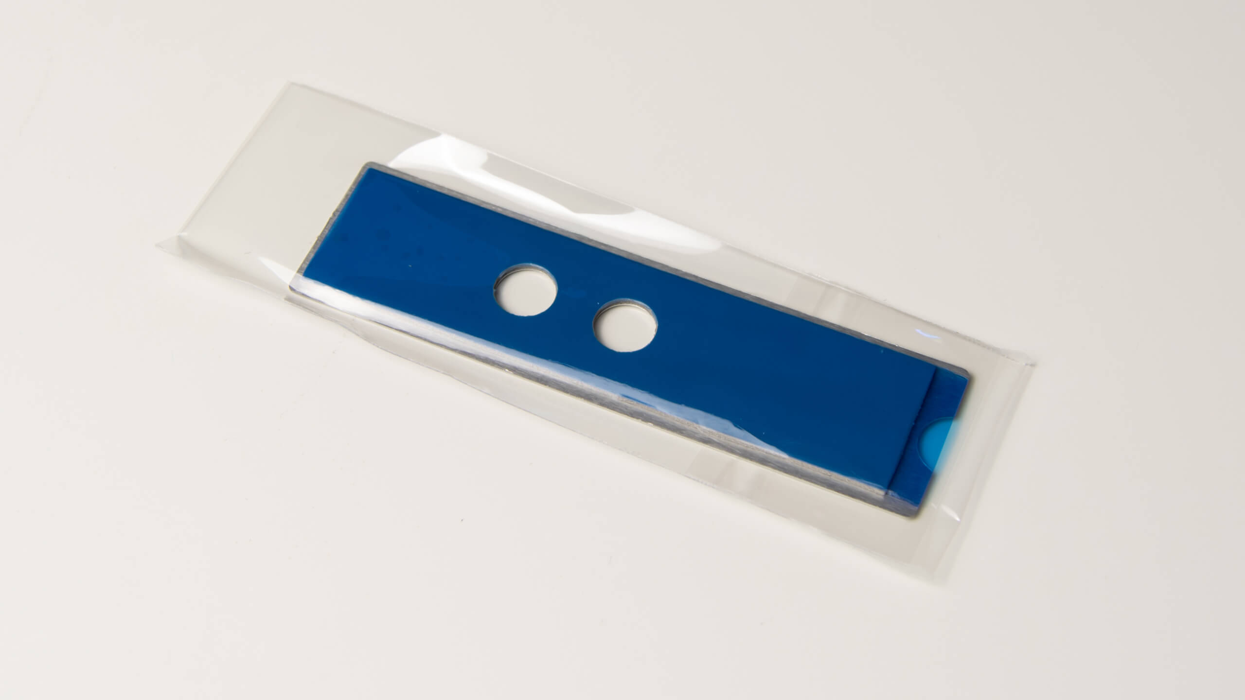 و لحلول تبريد فعالة وجدت شريحة من الألومنيوم بحجم قرص تشغيل من نوع M.2 ملصق بها شريحة Thermal Pad تعمل على توصيل الحرارة من قرصث التشغيل الى شريحة الألمونيوم