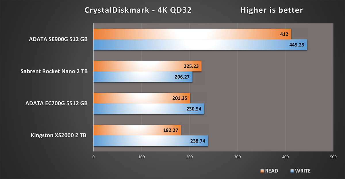 تستخدم اختبارات 4K QD 32 أحجام ملفات 4KB ، والوصول إليها في قائمة انتظار بعمق 32. يمكن لجهاز الكمبيوتر الخاص بك القيام بالكثير من الأشياء في عجلة من أمره ، ولكن لا يمكن القيام ب 32 شىئ في نفس الوقت بالضبط ، لذلك يستخدم قوائم الانتظار والمخازن المؤقتة لتتبع الطلبات التي لا تزال تحتاج إلى مكان. تأخذ كل من هذه الطلبات المدرجة في قائمة الانتظار جزءًا صغيرًا للغاية من الثانية حتى تكتمل حتى تتمكن من إجراء العديد من العمليات في ثانية من الزمن ، وبالتالي عمليات (I / O) (I / O في الثانية). إذا تمكنت من إجراء عملية كتابة في غضون 0.10 ثانية ، فيمكنك أن تقول إنك تستطيع تنفيذ 10 ك لكتابة عشوائية.