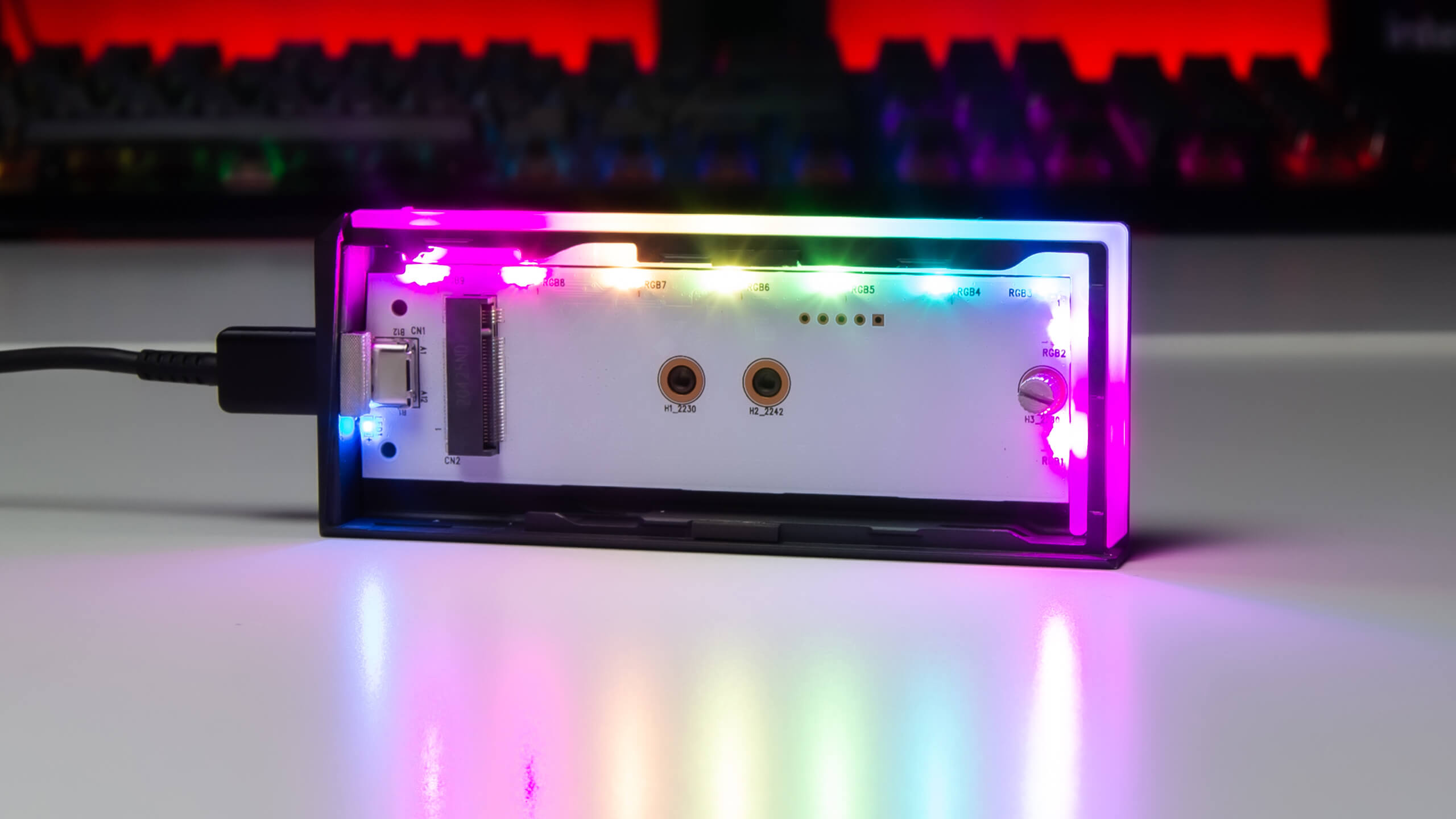 واحدة من أفضل حاويات أقراص التخزين و التى تقوم بتحويل المحركات من نوع M.2 الى وحدة تخزين خارجية متنقلة و تعتمد على بنيان قوى من الألومنيوم و ناشر اضاءة RGB للمظهر الجمالى