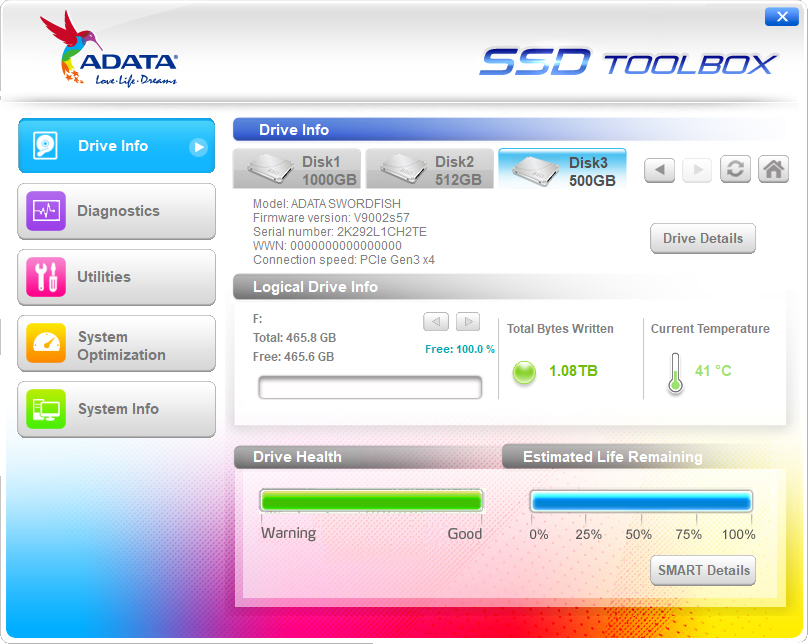 تعتمد ADATA على تطبيق SSD ToolBox فى مراقبة أداء محركات التشغيل التى تنتجها الشركة