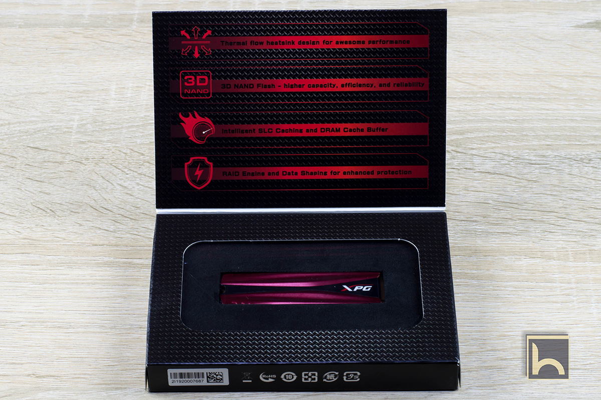 تستهدف سلسلة XPG من ADATA الألعاب و التي تنعكس في التصميم. ليس فقط تصميم اقراص التشغيل ولكن أيضًا التغليف و قد كان الأحمر والأسود عنوان لاجهزة الالعاب لسنوات و ستجد المعلومات الهامة مثل السعة و التقنيات مدونة على التعليف من الامام