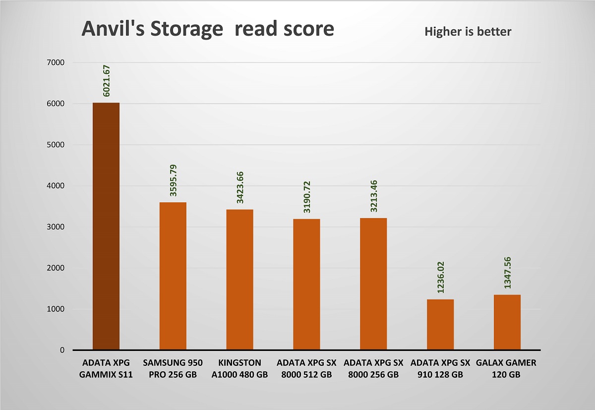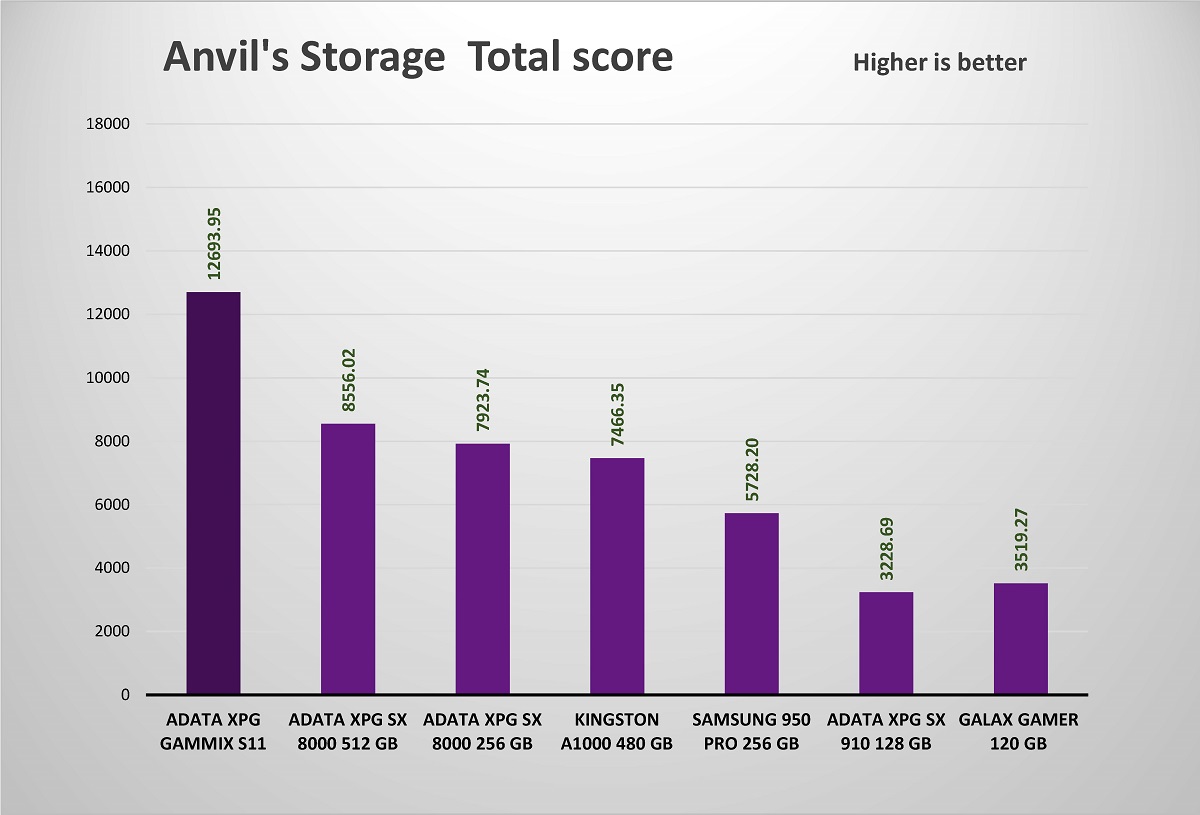 يؤكد Anvil Storage Utilities مرة أخرى على جميع أرقام الأداء التي نراها وبشكل عام ، وحقق قرص التشغيل XPG GAMMIX S11 الجديدة مجموع نقاط بلغ 12.693 نقطة
