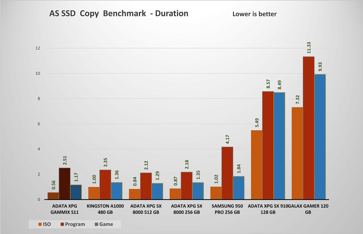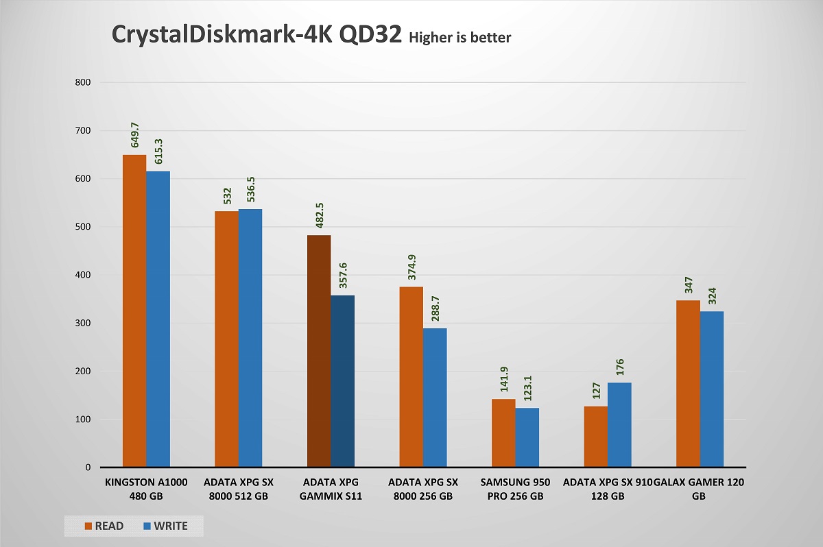 لم يتسطيع XPG Gammix S11 ان يتفوق على قرص تشغيل مثل Kingston A1000 480GB فى هذا الاختبار الا ان الامر يتوقف على مكونات التصنيع مثل شرائح الذاكرة و المتحكم