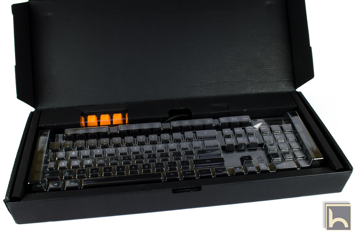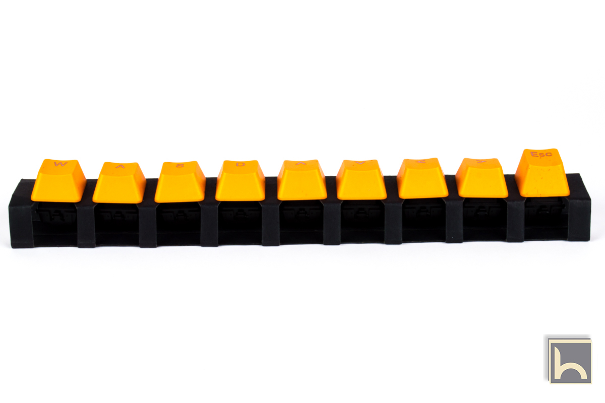يأتى مع لوحة المفاتيح Aorus K9 Optical تسعة مفاتيح اضافة من نوع Flaretech الاحمر عكس المفاتيح الاساسية التى تاتى من النوع الازرق و معها أغطية برتقالية للتسعة مفاتيح و هى مخصصة لألعاب FPS التى تحتاح تلك المفاتيح W A S D بالاضافة الى اربعة مفاتيح للاتجاهات و مفتاح ESC