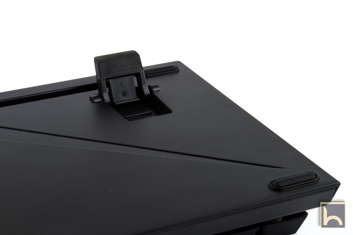 فى الاطراف الخلفية من لوحة المفاتيح يوجد اثنان من الارجل المطاطية القابلة للحركة لتمكنك من امالة لوحة المفاتيح بقدر ثابت للامام حتى توفر لك راحة فى الاستخدام اثناء جلسات الالعاب