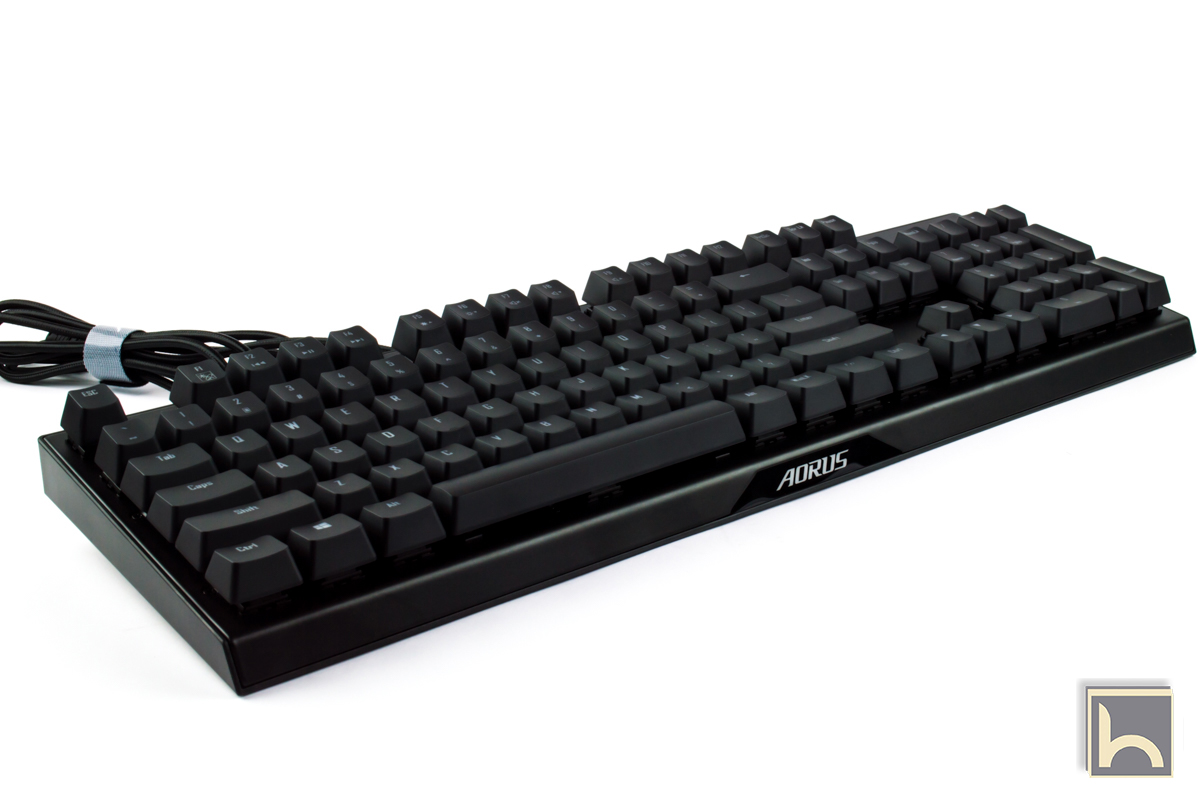 تستخدم Aorus مادة طلاء على السطج العلوى للوحة المفاتيح Aorus K9 Optical و على اغطية المفاتيح و يعمل على عدم التقاط بصمات اليد بسهولة و حماية لوحة المفاتيح من الاتساخ بالاضافة ان لوحة المفاتيح يظهر عليها جودة التصنيع الممتازة و على اليمين نرى شعار Aorus بخلاف الشعار الموجود فى المنتصف و تضىؤ لوحة المفاتيح بأضاءة مميزة RGB سوف نتعرف عليها لاحقا مع التعريف بالبرنامج المستخدم.