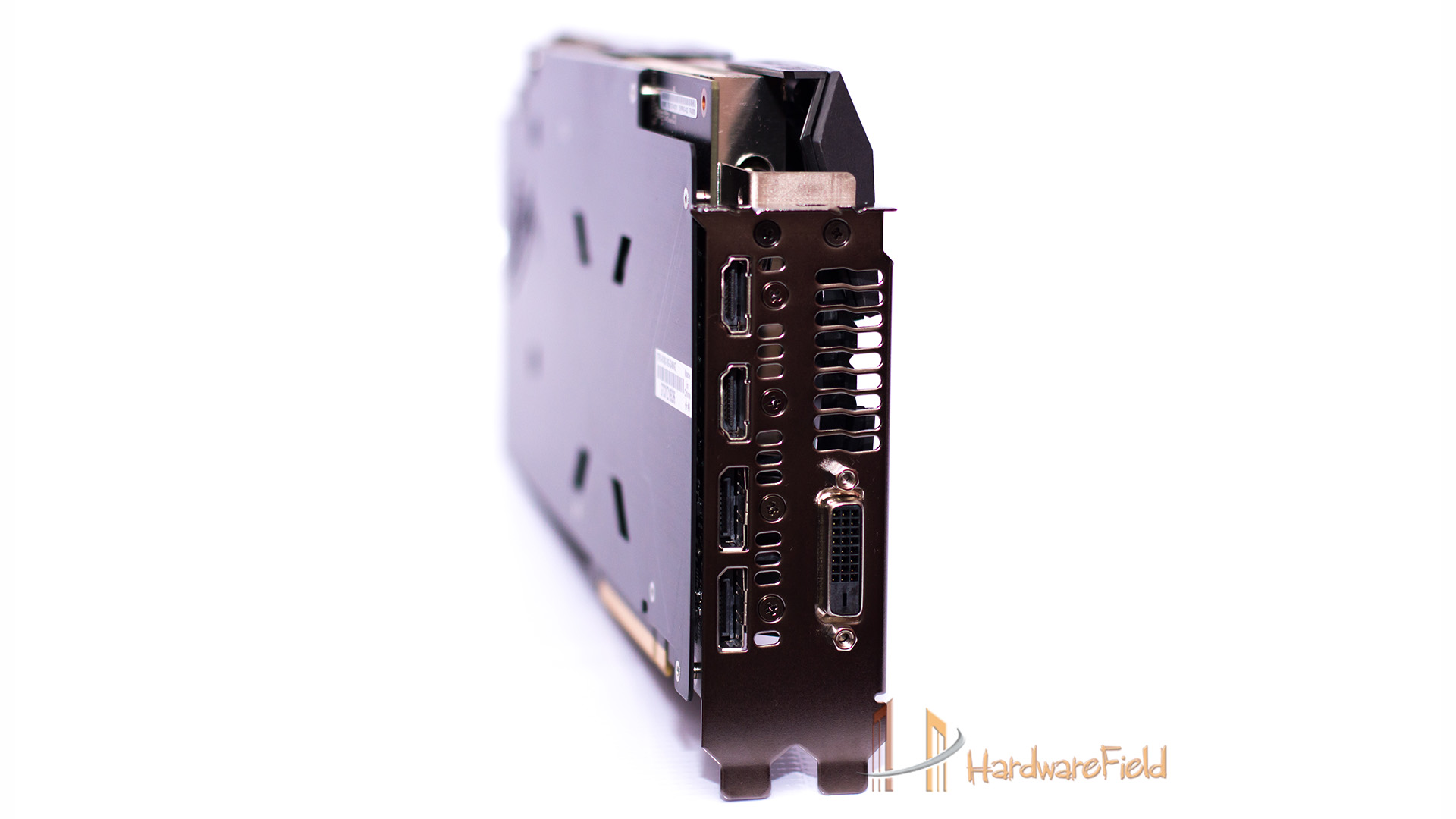 تحتوى البطاقة على خمسة منافذ لتوصيل الشاشات و وسائل العرض منفذين HDMI و اثنان Diplay Port و منفذ DVI و ذلك يساعد على توصيل اكثر من شاشة بالبطاقة و ايضا تنوع المنافذ لتلائم جميع المنافذ الموجودة بالشاشات .