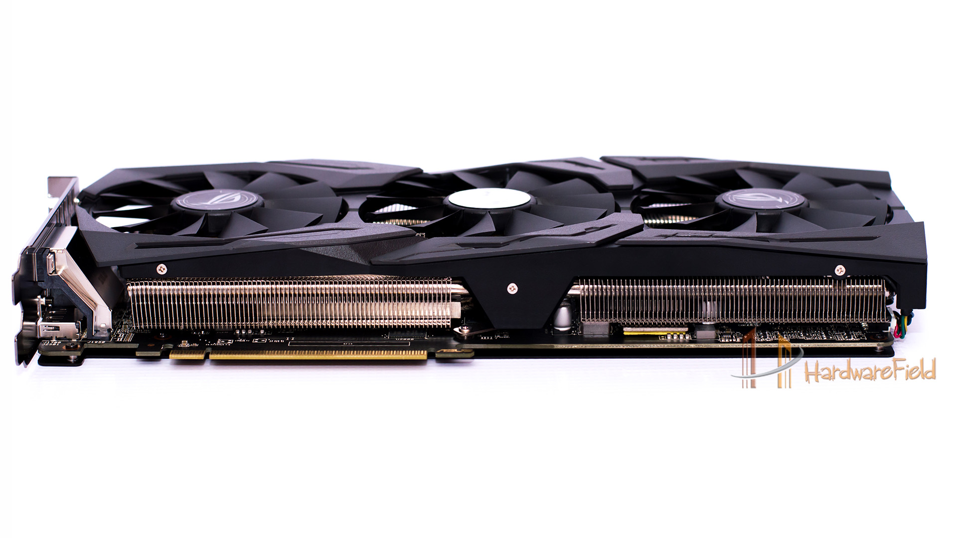 تحتاج البطاقة الى منفذين من فتحات الصندوق الخلفية PCIe Slots و هذا امر جيد فلدينا الان ASUS RX 480 Strix OC وزن اخف و ثلاث مراوح للتبريد و كما نرى فى الصور فأن غطأ تبريد البطاقة البلاستيك لم يغطى جانبى البطاقة بالكامل و اعتقد انها ميزة لخروج الهواء الساخن من مشتت البطاقة رغم انها من الناحية الجمالية ليست الافضل لكن المهم هو الاداء فى المقام و الاول و الاهتمام بحلول التبريد يعطى افضلية فى كسر السرعة .