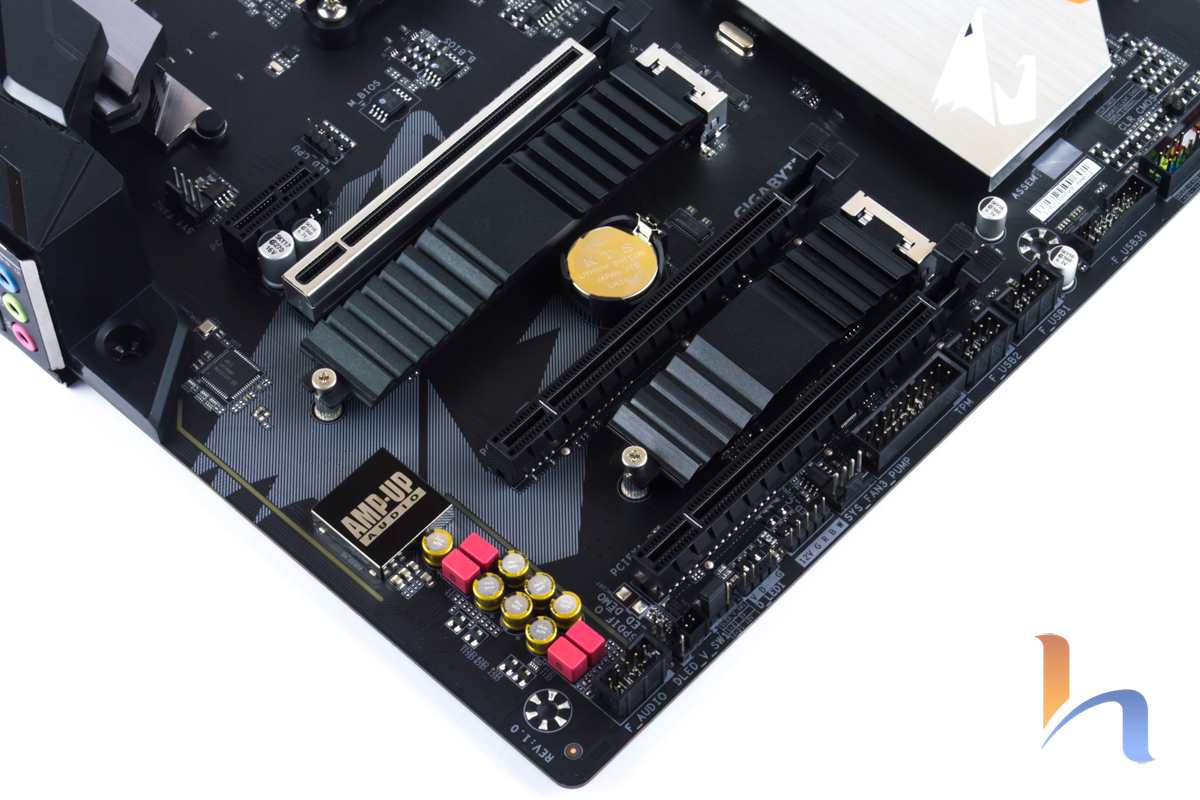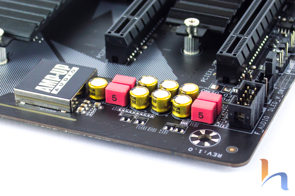 تحتوى سلسلة لوحات AORUS على مزيج فريد من المكثفات الصوتية FKP2 المستخدمة بأنظمة الهاى فاى و التى تقوم بتصنيعها شركة WIMA مع المكثفات الصوتية فائقة التطور من شركة Chemicon . هذا و تستخدم أنظمة الهاى فاى المتطورة مكثفات FKP2 من شركة WIMA و ذلك بشكل واسع بينما تستخدم المعدات و الأجهزة الصوتية المتطورة مكثفات Fine Gold من شركة Nichicon لإنتاج صوت أكثر ثراءً و عمقاً و كذا لتوفير مزيد من الوضوح مع الترددات الصوتية العالية. إن اجتماع كل ذلك مع التقنية الصوتية AMP-UP من جيجابايت يشكل أقوى الابتكارات الصوتية التى تقدم لعاشقى الموسيقى تجربة صوتية لا يمكن نسيانها.