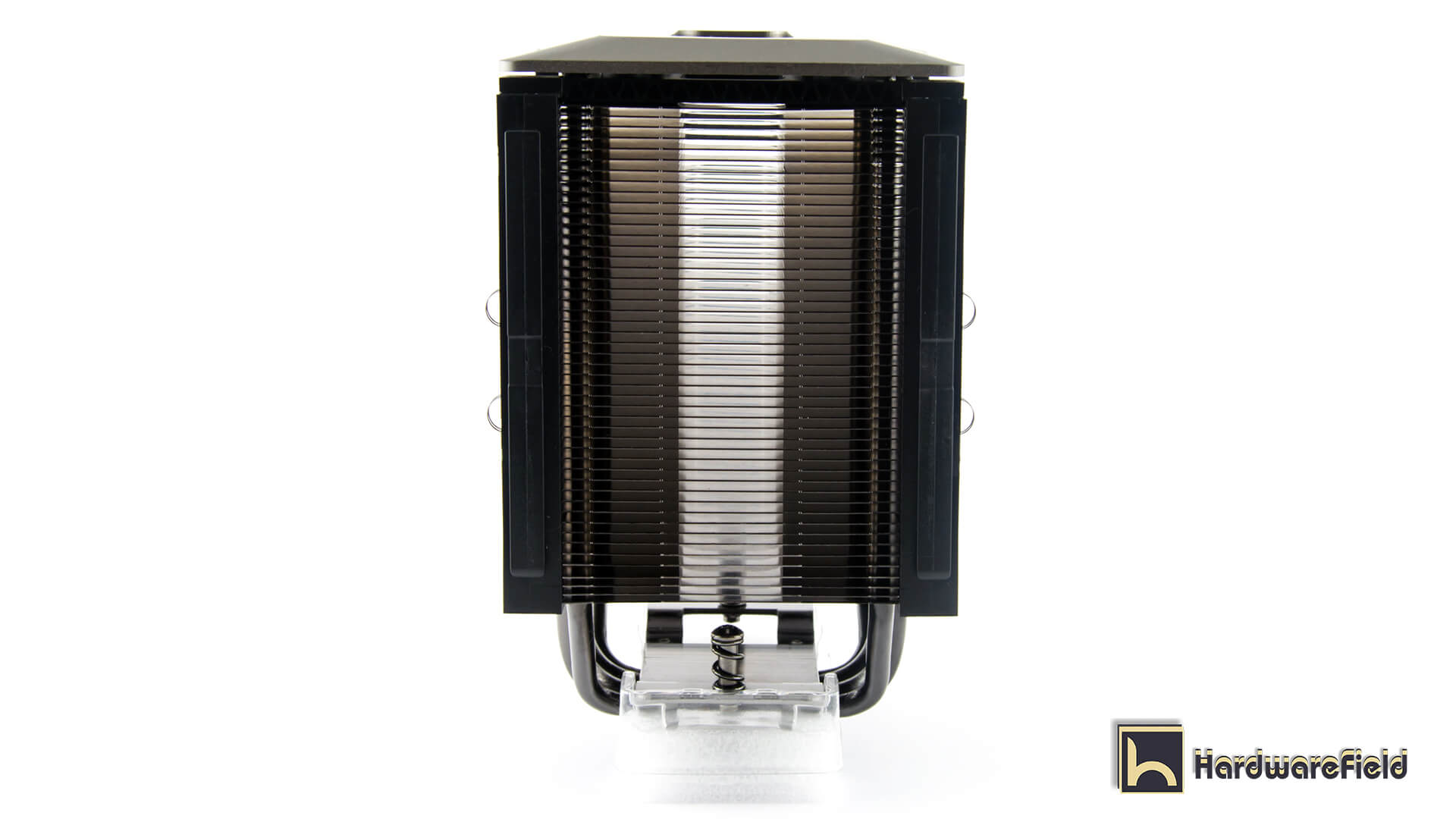 المبرد بدون المراوح يبدو كتلة كبيرة من المعدن مطليية باللون الأسود و تعتمد على الكثير من زعانف التبريد المصنعة من الالومنيوم و هى مصممة باسنان متعرجة مثل حافة المنشار فكن حذر عند تثبيت المبرد و الوحدة بأكملها ضخمة و كبيرة جدا فهذا ليس مبرد صغير الحجم لذا اتوقع ان يكون اداء المبرد جيد حتى مع المعالجات التى تستهلك طاقة كبيرة و تنتج حرارة كبيرة