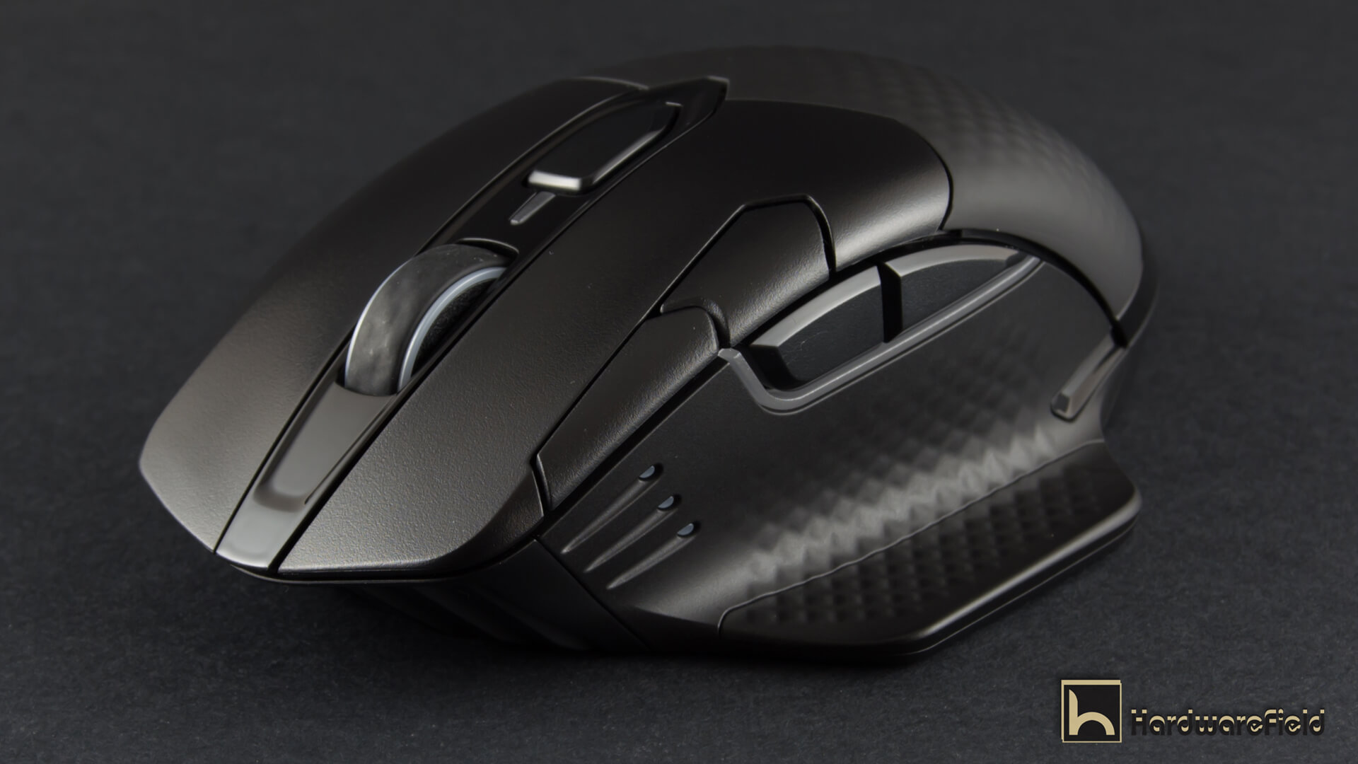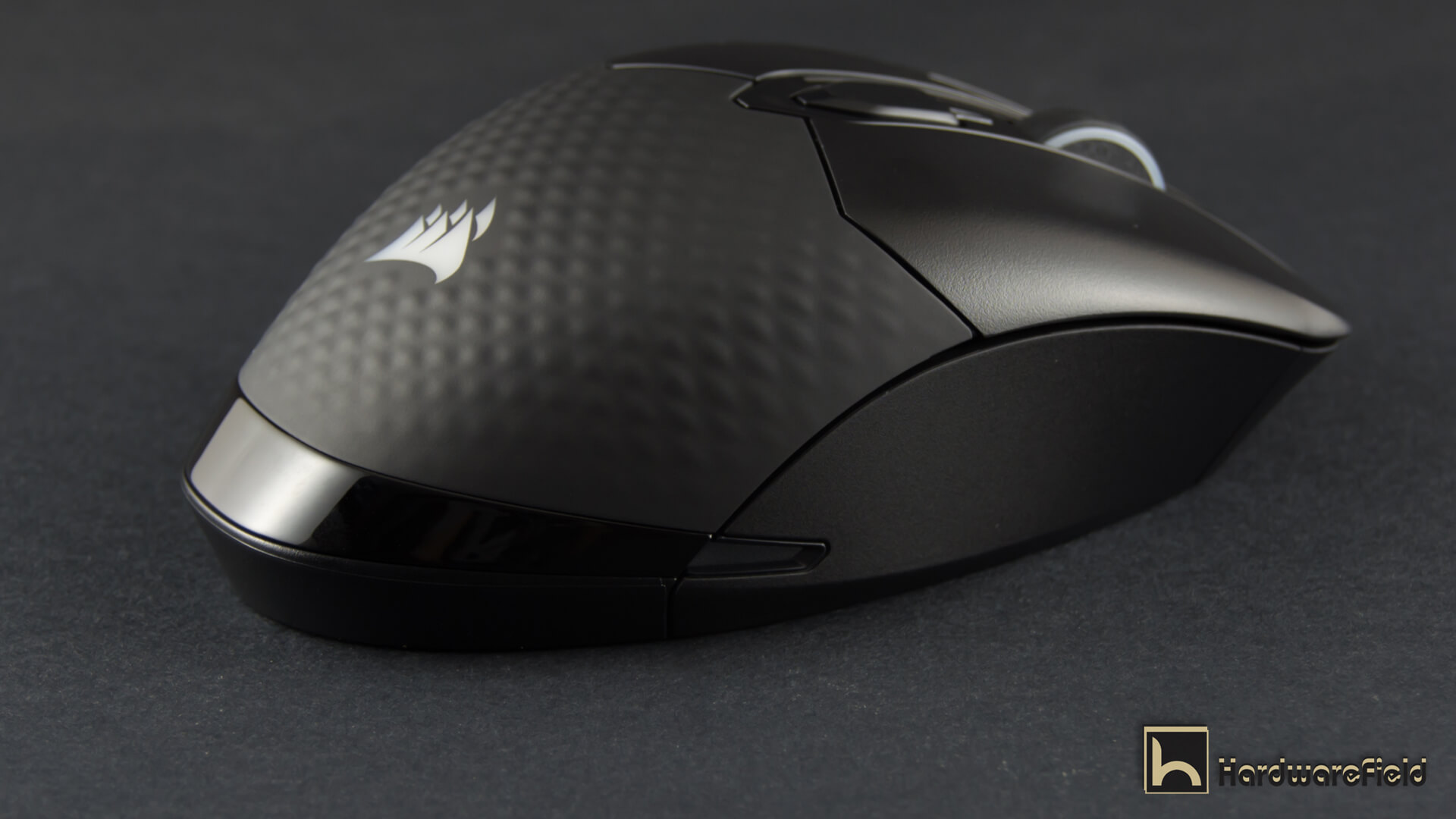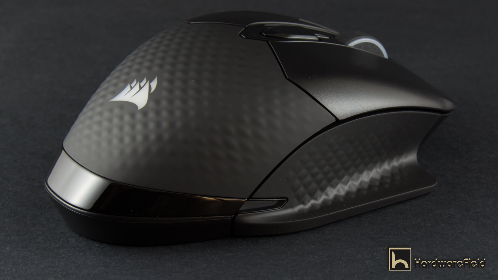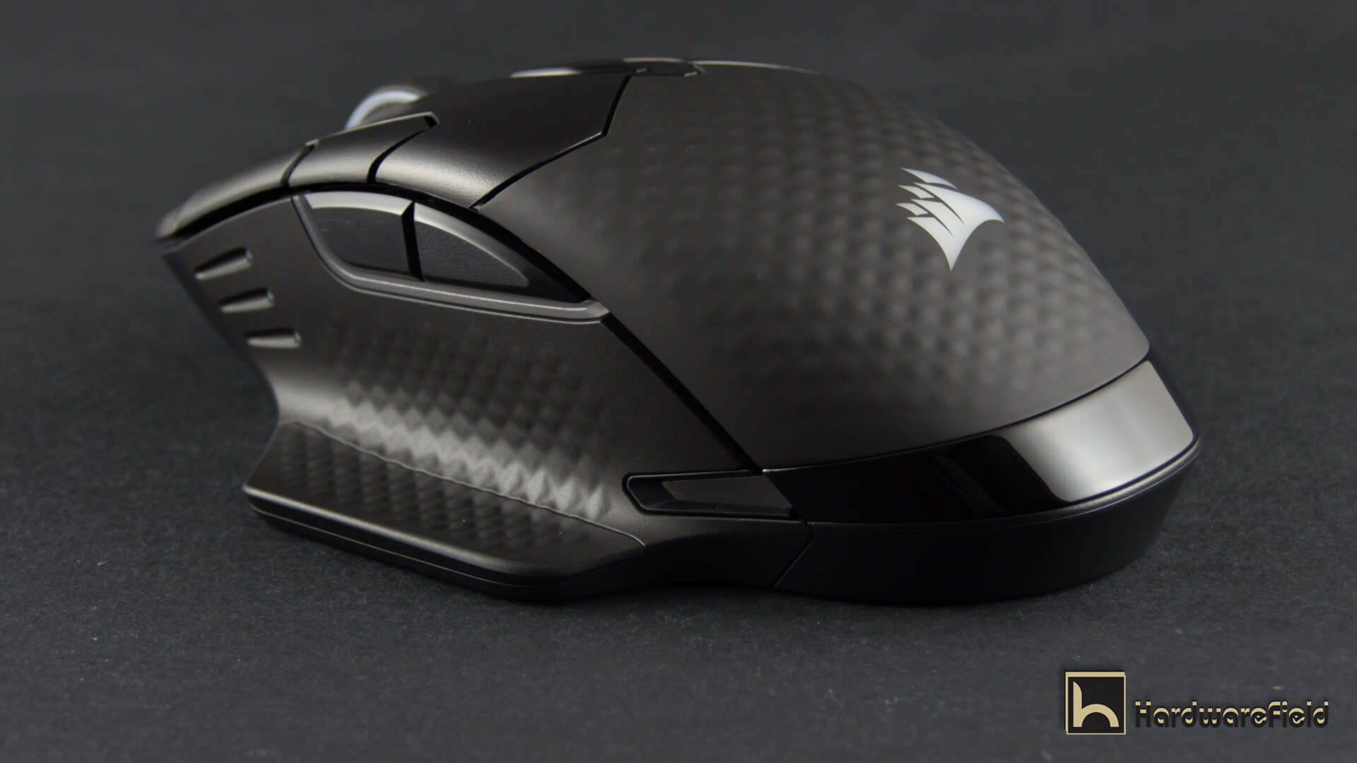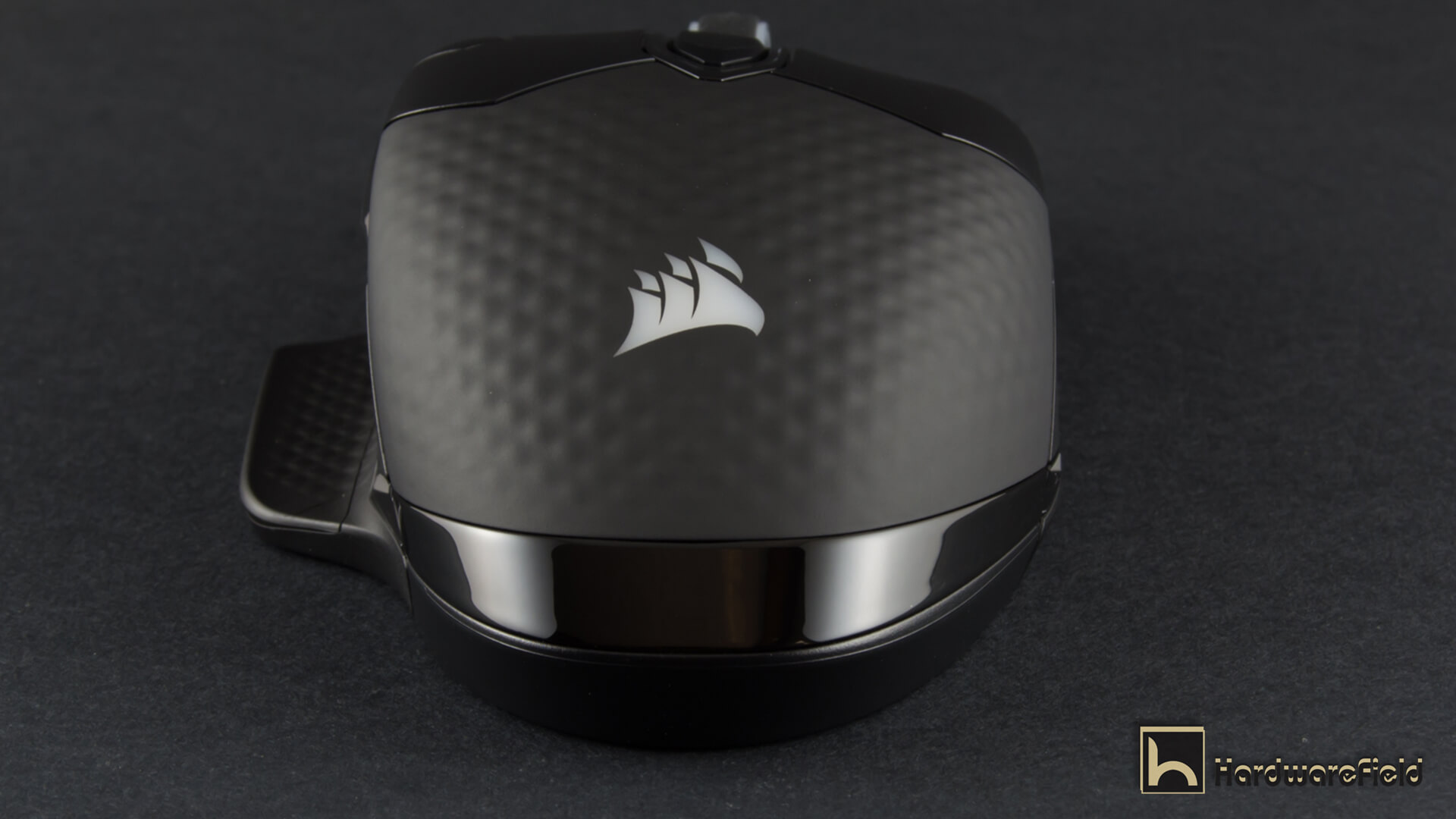 ماوس الألعاب DARK CORE RGB PRO يعتمد على مستشعر بصرى PAW3392 بمعدل 18000 DPI و يأتى بثمانية أزرار قابلة للبرمجة مع تصميم أضاءة ARGB ممكن تخصيصها من تطبيق iCUE و تصميم سطح الماوس رائع جدا من ناحية الملمس الذى يمنع الأنزلاق فى حالة اليد المتعرقة مع طبقة طلاء مطاطية غير لامعة تنتهى بشريط أسود لامع فى نهاية الماوس مع شعار Corsair الذى يمكن اضاءته باضاءة RGB و يعتبر وزن الماوس منخفض الى حد ما فهو يزن 133 جرام