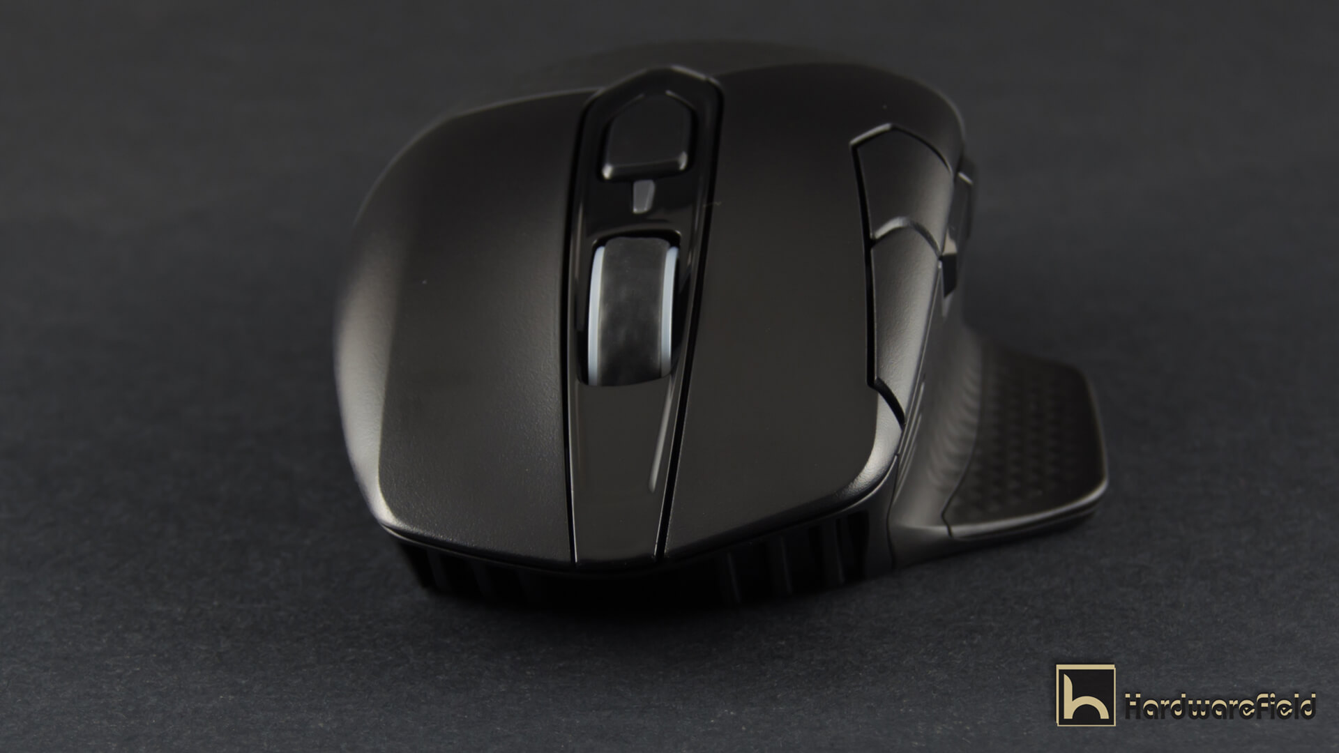 جانبى الماوس غير متماثلين فى التصميم و الأبعاد فتجد الجانب الأيسر مرتفع قليلا عن الجانب الايمن لضمان راحة اليد اثناء جلسات الألعاب لساعات طويلة