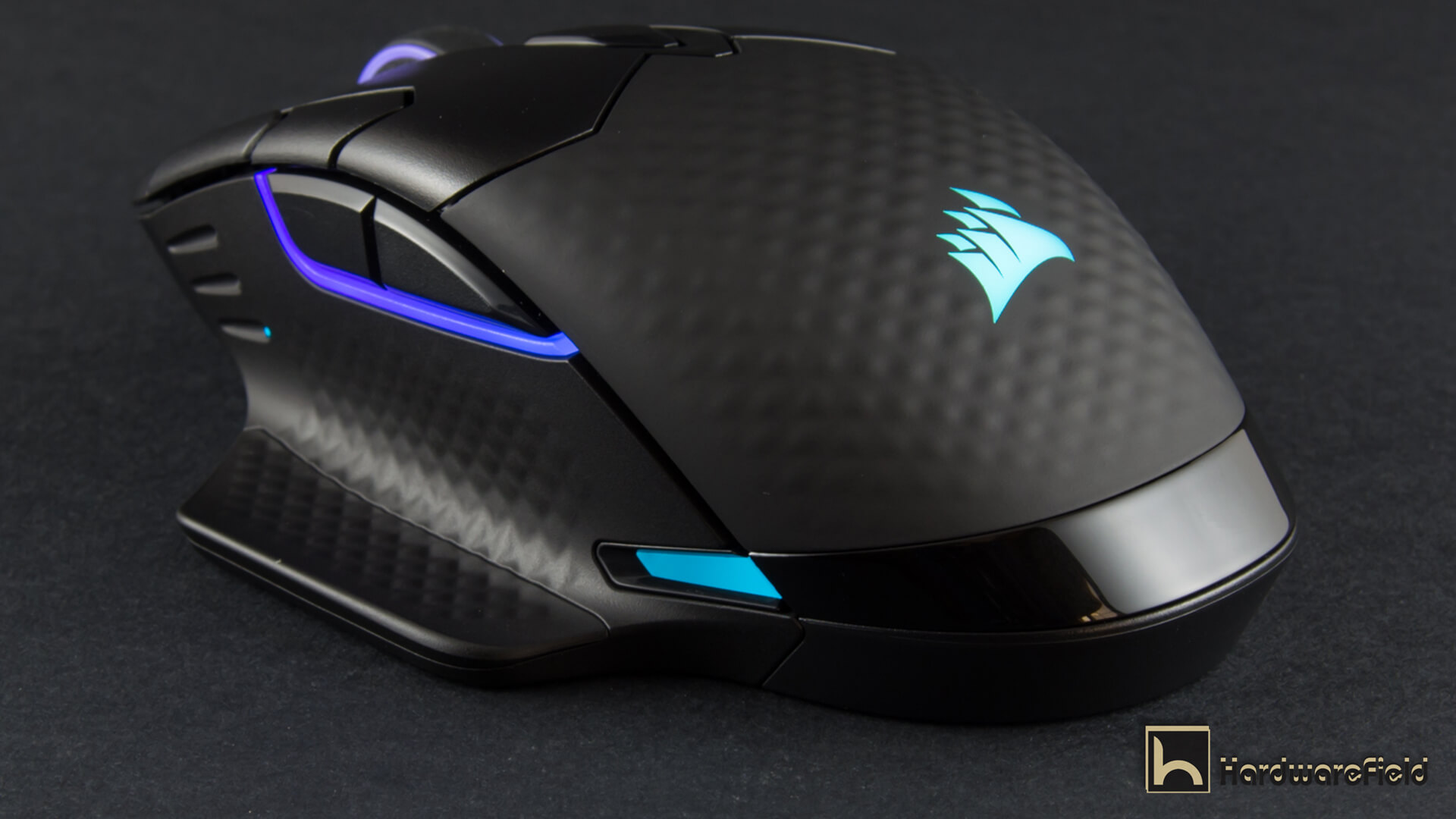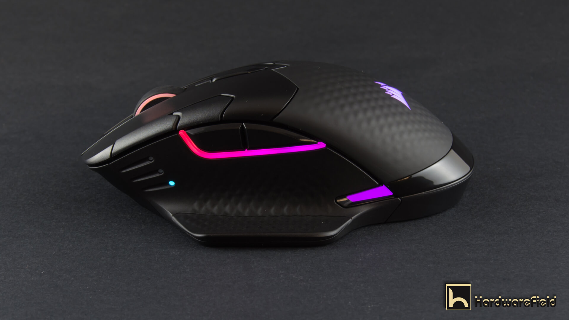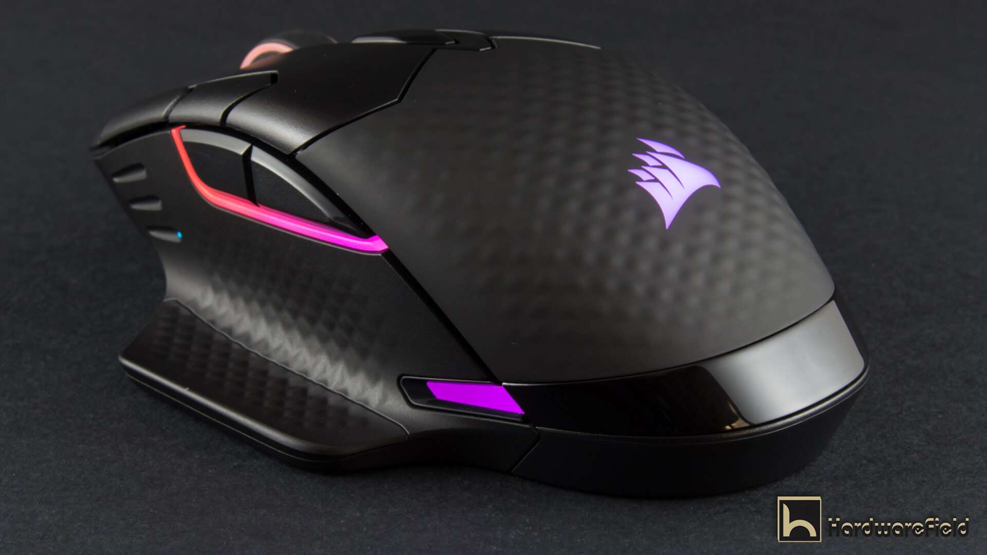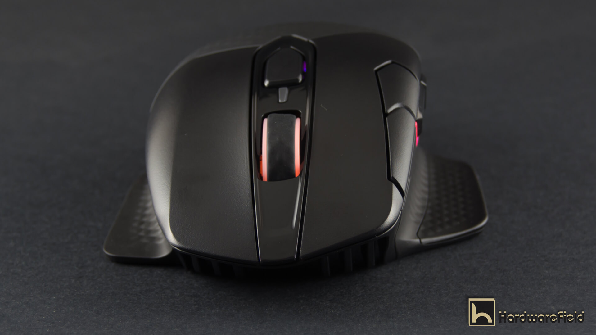 هنا ترى مجموعة من الصور توضح مناطق الأضاءة RGB بداية من شعار Corsair على الجزء الخلفى من الماوس و أيضا اضار مضىء حول عجلة التمرير و شريط اضاءة بالجانب الأيسر أسفل الأزرار و شريطين صغيرين على جانبى الماوس من الأسفل قى الجزء الخلفى و يمكن التحكم فى كل مناطق الأضاءة و تخصيصها كما تشاء من تطبيق iCUE كما ذكرت سابقا و تبدو الاضاءة رائعة جدا و أختيار أماكن تعطى تأصيرات اكثر من ممتازة