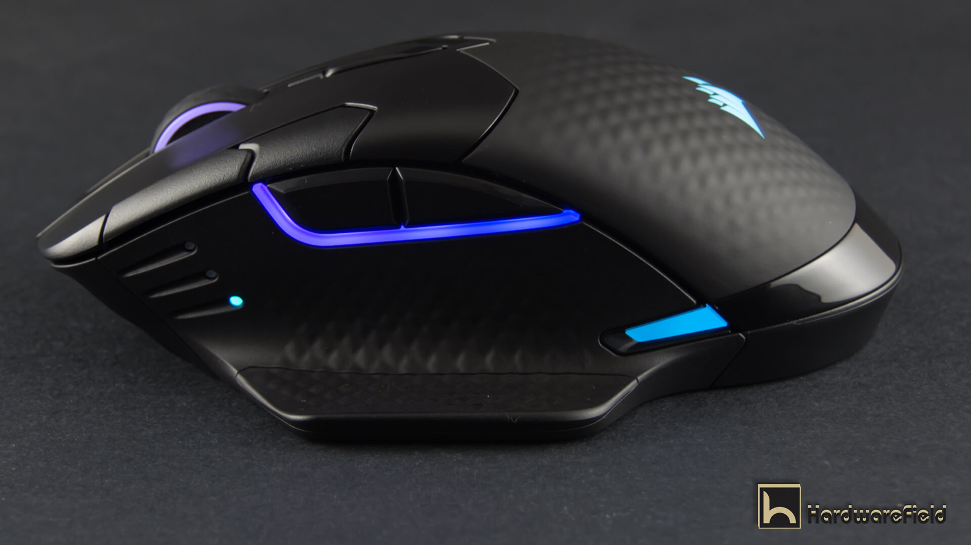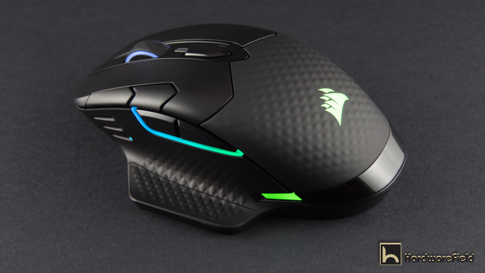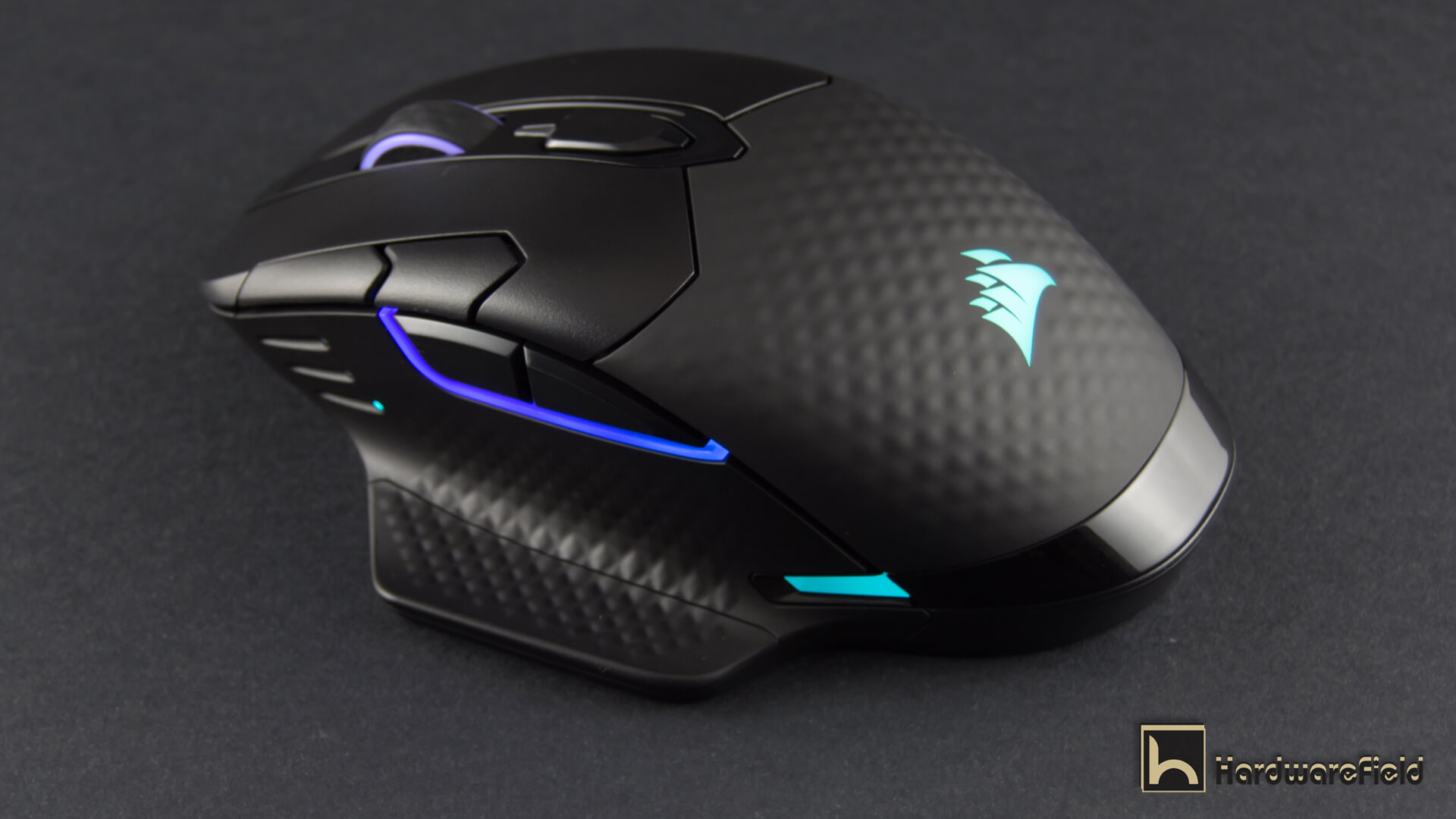 هنا ترى مجموعة من الصور توضح مناطق الأضاءة RGB بداية من شعار Corsair على الجزء الخلفى من الماوس و أيضا اضار مضىء حول عجلة التمرير و شريط اضاءة بالجانب الأيسر أسفل الأزرار و شريطين صغيرين على جانبى الماوس من الأسفل قى الجزء الخلفى و يمكن التحكم فى كل مناطق الأضاءة و تخصيصها كما تشاء من تطبيق iCUE كما ذكرت سابقا و تبدو الاضاءة رائعة جدا و أختيار أماكن تعطى تأصيرات اكثر من ممتازة