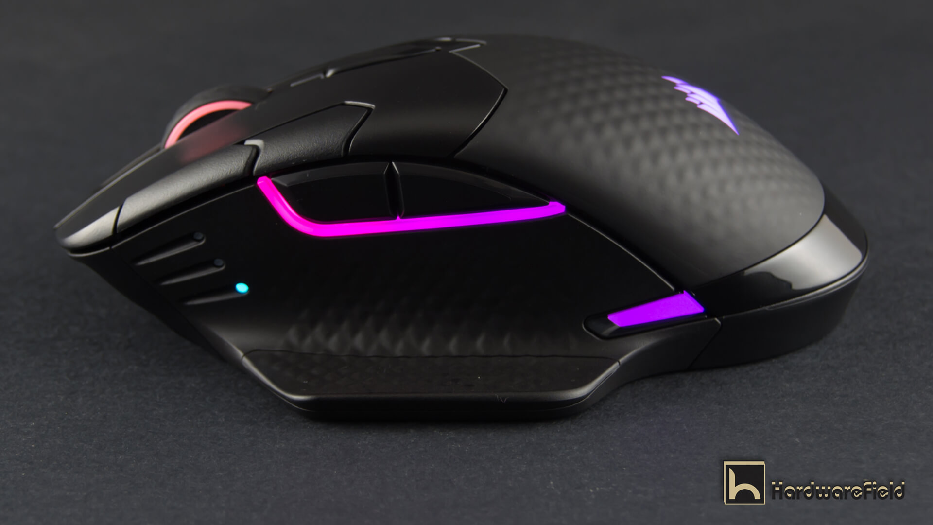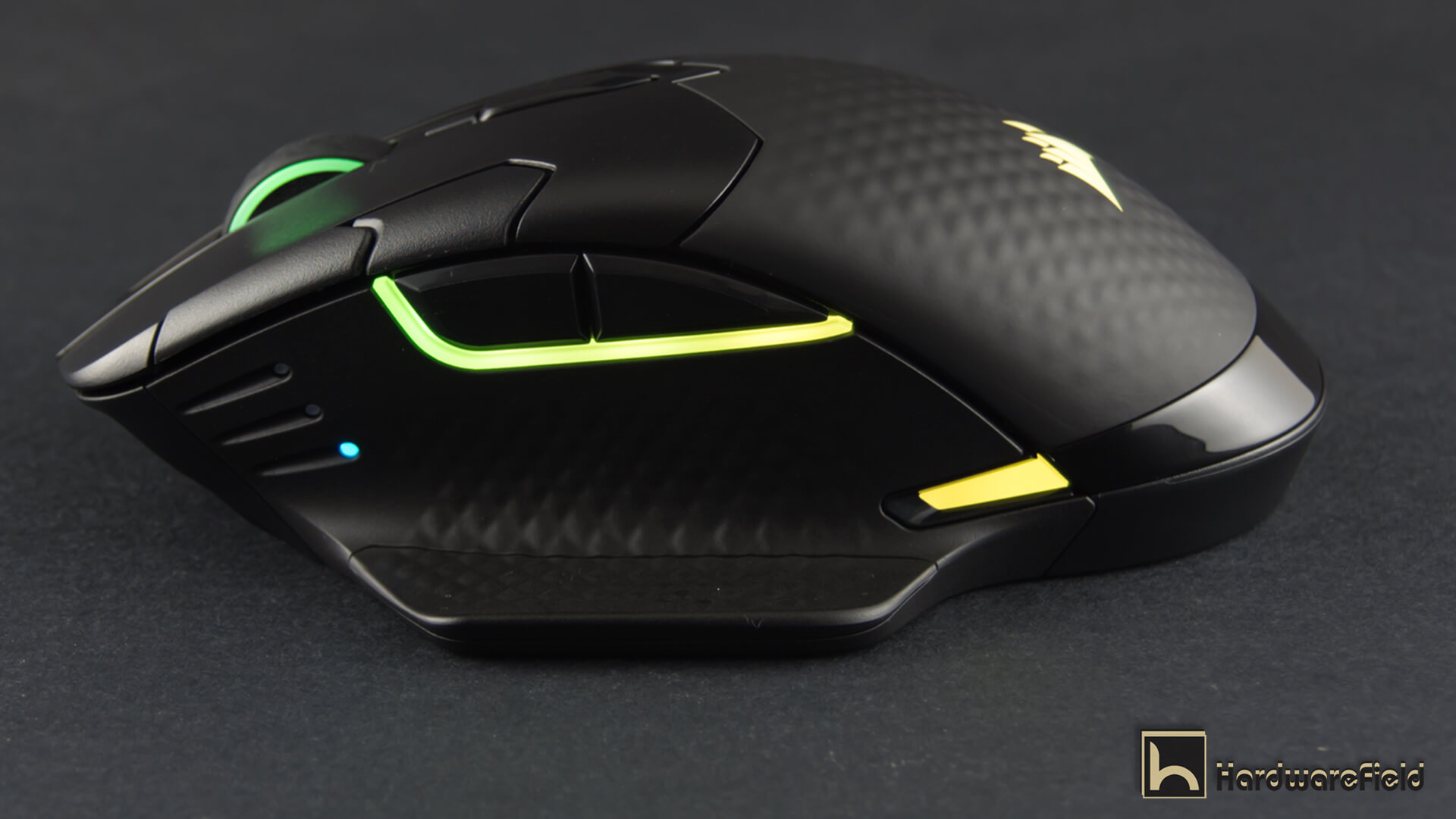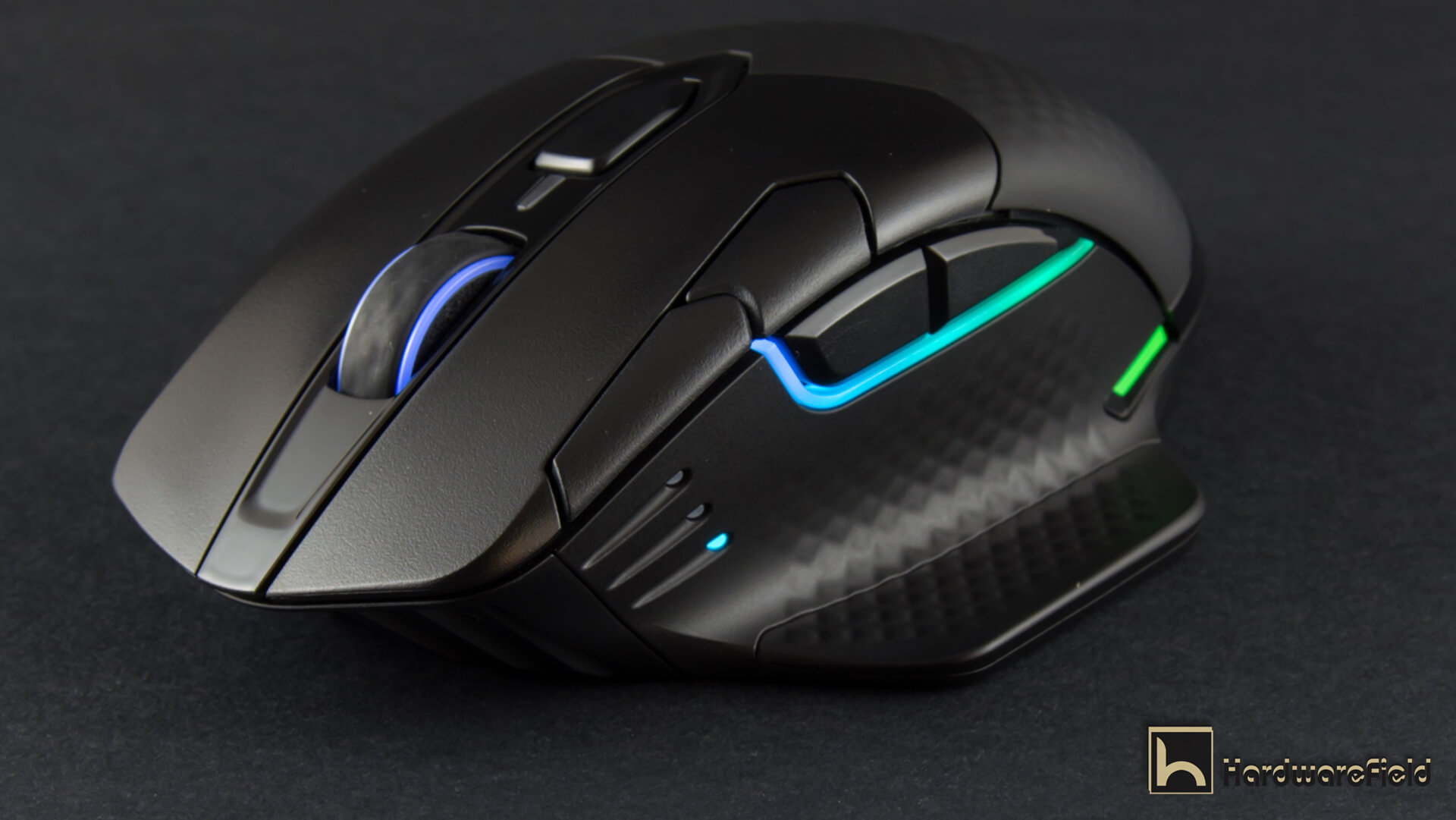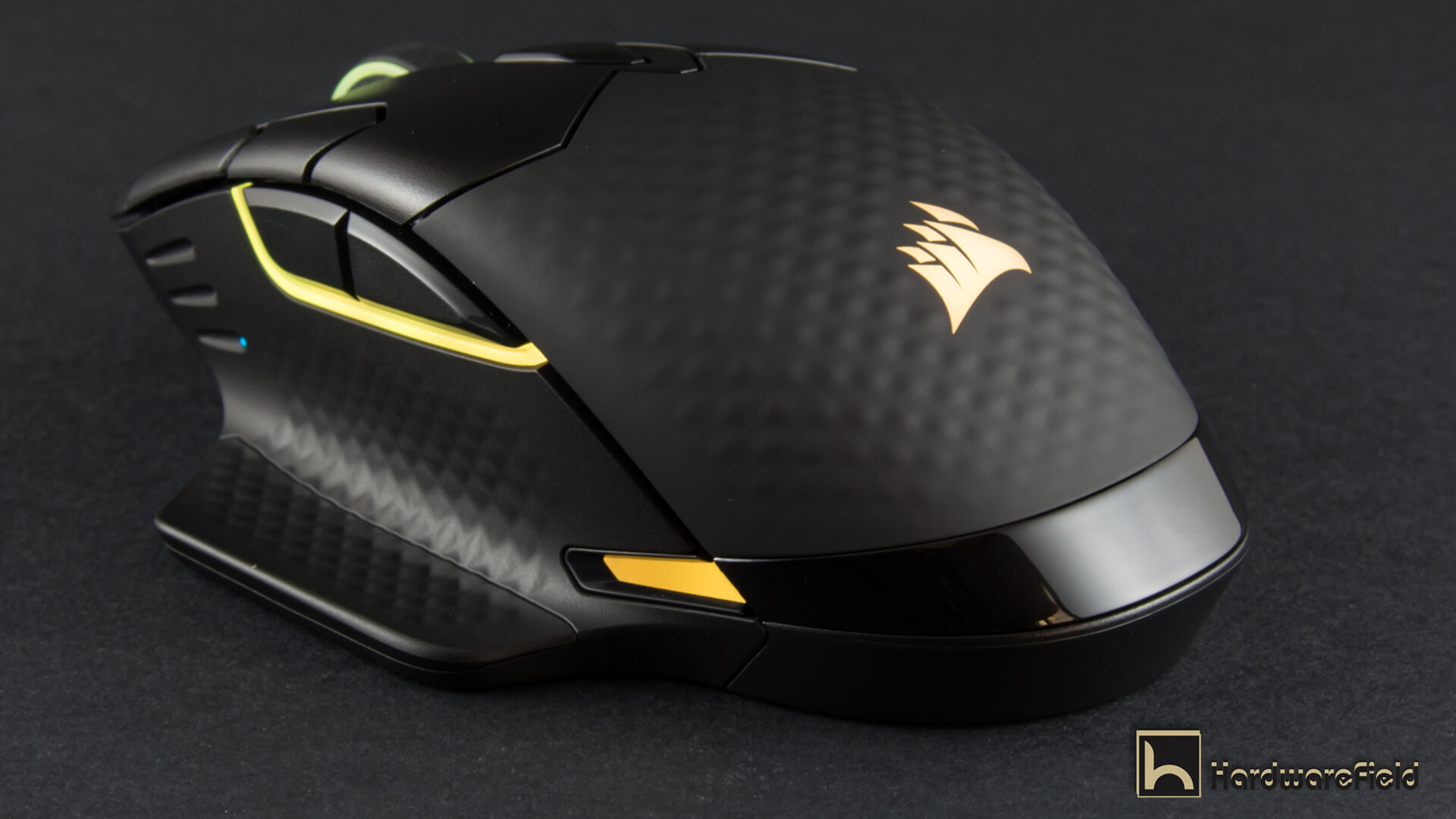 هنا ترى مجموعة من الصور توضح مناطق الأضاءة RGB بداية من شعار Corsair على الجزء الخلفى من الماوس و أيضا اضار مضىء حول عجلة التمرير و شريط اضاءة بالجانب الأيسر أسفل الأزرار و شريطين صغيرين على جانبى الماوس من الأسفل قى الجزء الخلفى و يمكن التحكم فى كل مناطق الأضاءة و تخصيصها كما تشاء من تطبيق iCUE كما ذكرت سابقا و تبدو الاضاءة رائعة جدا و أختيار أماكن تعطى تأصيرات اكثر من ممتازة