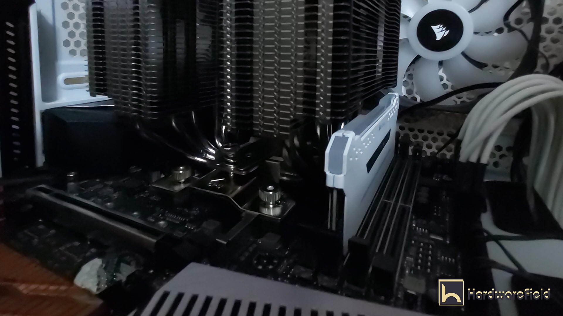 تركيب المبرد الهوائى DeepCool Assassin III لم يكن بالأمر الصعب فقط أتبع دليل التعليمات و فى الصورة بالأسفل تم تثبيت المبرد على اللوحة الرئيسية X570 Aorus Master على منصة AMD مع ملاحظة أن الصامولة الملامسة مباشرة للوحة الرئيسية تحتوى على عازل حتى لا يتم قطع اى خلايا فى جسم اللوحة الرئيسية