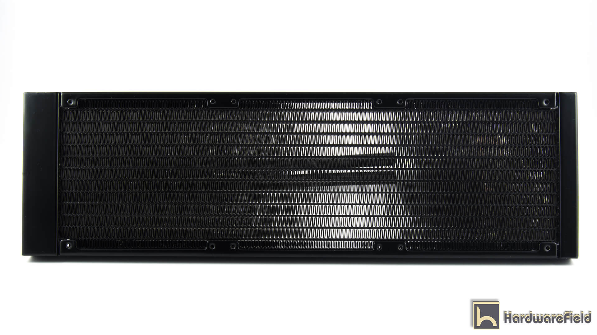 من الفحص المبدئى نجد رادياتير بطول 402 ملليميتر و عرض 120 مم و سمك 27 مم بدون مراوح و يزيد الى 53 مم بعد اضافة المراوح و تم صناعة الرادياتير م الالومنيوم بالكامل مع طلاؤه باللون الاسود بجودة طلاء عالية