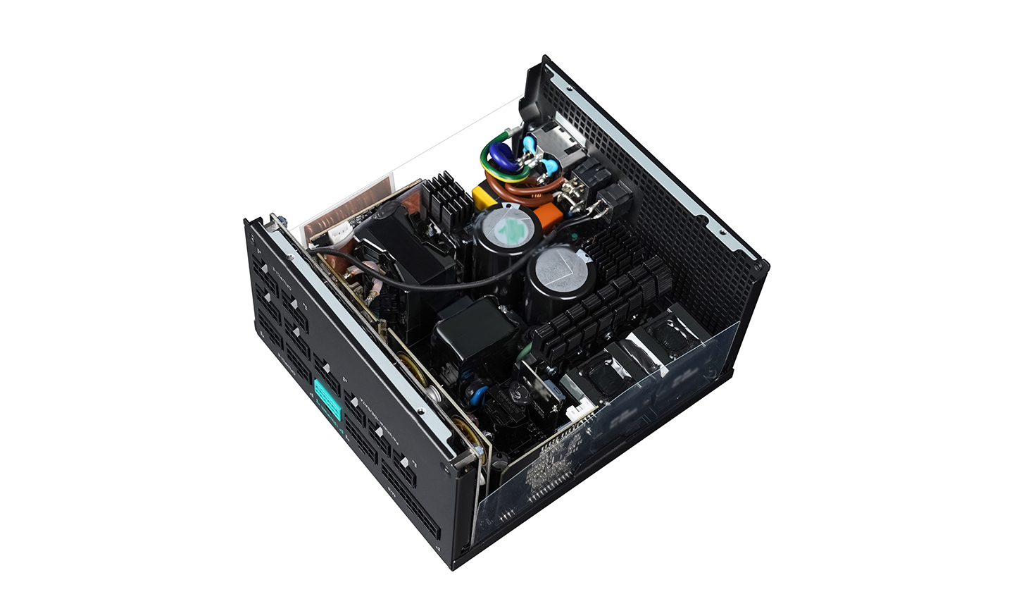 نحن لا نقوم بتفكيك مزودات الطاقة و لا ننصح متابعينا ايضا بفعل ذلك للحفاظ على ضمان مزود الطاقة و من الداخل نجد أن مزود الطاقة PX1300P يحتوى على مكثفات حصرية من العلامات التجارية اليابانية: Nippon Chemi-Con وRubycon، بالإضافة إلى عدد كبير من المكثفات البوليمرية و قد تم تم تجهيز مزود الطاقة بتصحيح عامل الطاقة النشط ويغطي نطاقًا واسعًا من جهد الإمداد من 100 إلى 240 فولت وهذا يضمن التشغيل الموثوق في ظروف الجهد المنخفض في الشبكة الكهربائية، والذي لا يقل عن القيم القياسية المحددة و يتوافق تصميم مزود الطاقة تمامًا مع الاتجاهات الحديثة بما في ذلك مصحح عامل الطاقة النشط والمقوم المتزامن لقناة +12VDC ومحولات DC-DC المستقلة لخطوط +3.3VDC و+5VDC.