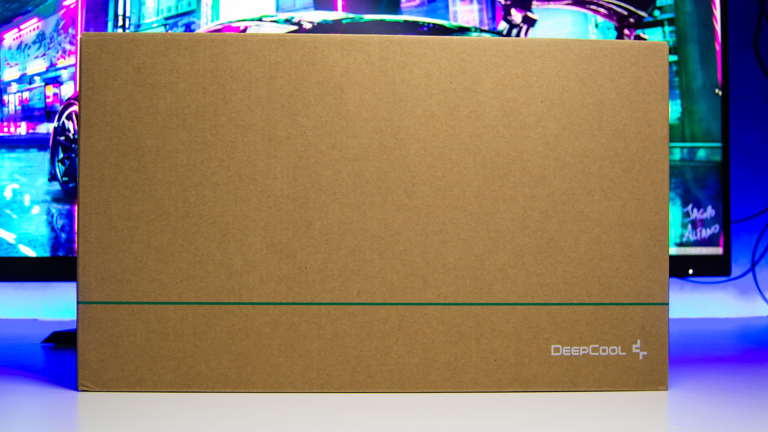 و لكى يتم فتح صندوق التغليف يجب أزالة الغلاف الورقى الغير مكتمل لتجد امامك صندوق من الكرتون يحمل شعار DeepCool فقط من دون أى معلومات
