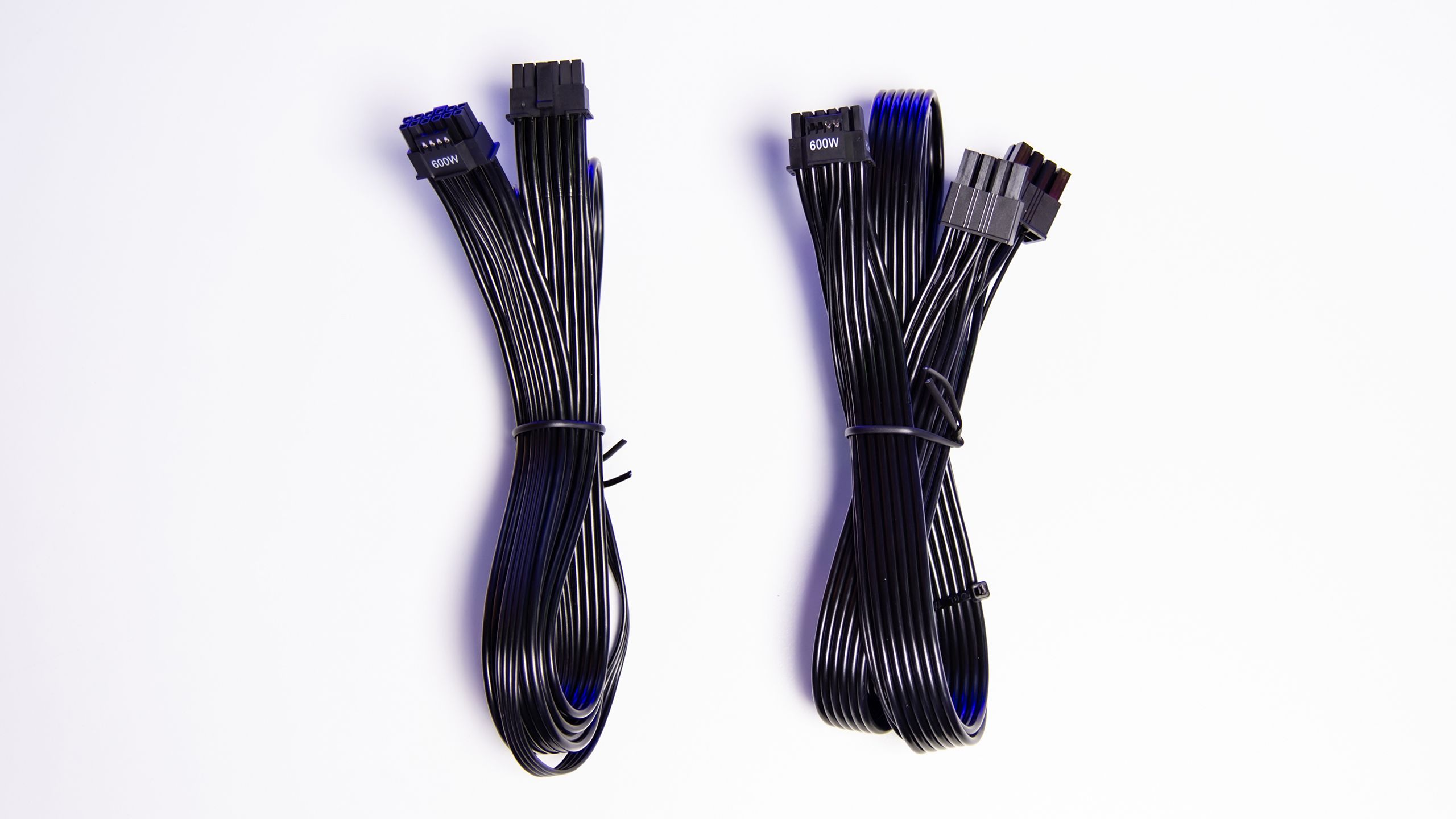 فى الواقع ان أهم عنصر أرادت DeepCool التركيز عليه هو تضمين موصلين طاقة 12VHPWR لمزود الطاقة لتوفير 600 واط من الطاقة الكهربية و احدى الكابلين هو موصل 12VHPWR مباشر من مزود الطاقة من مقبس 12VHPWR و الأخر هو محول من8+8 PCI-E الى 12VHPWR و هو ما يمكن مزود الطاقة PX1300P من توصيل سبعة بطاقات رسومية من خلال الكابلات المرفقة و تأتى كابلات 12VHPWR بطول 650 مم و نرى ان اطوال جميل الكابلات مناسبة لأغلب الصناديق و تسهل عملية تنظيم الكابلات
