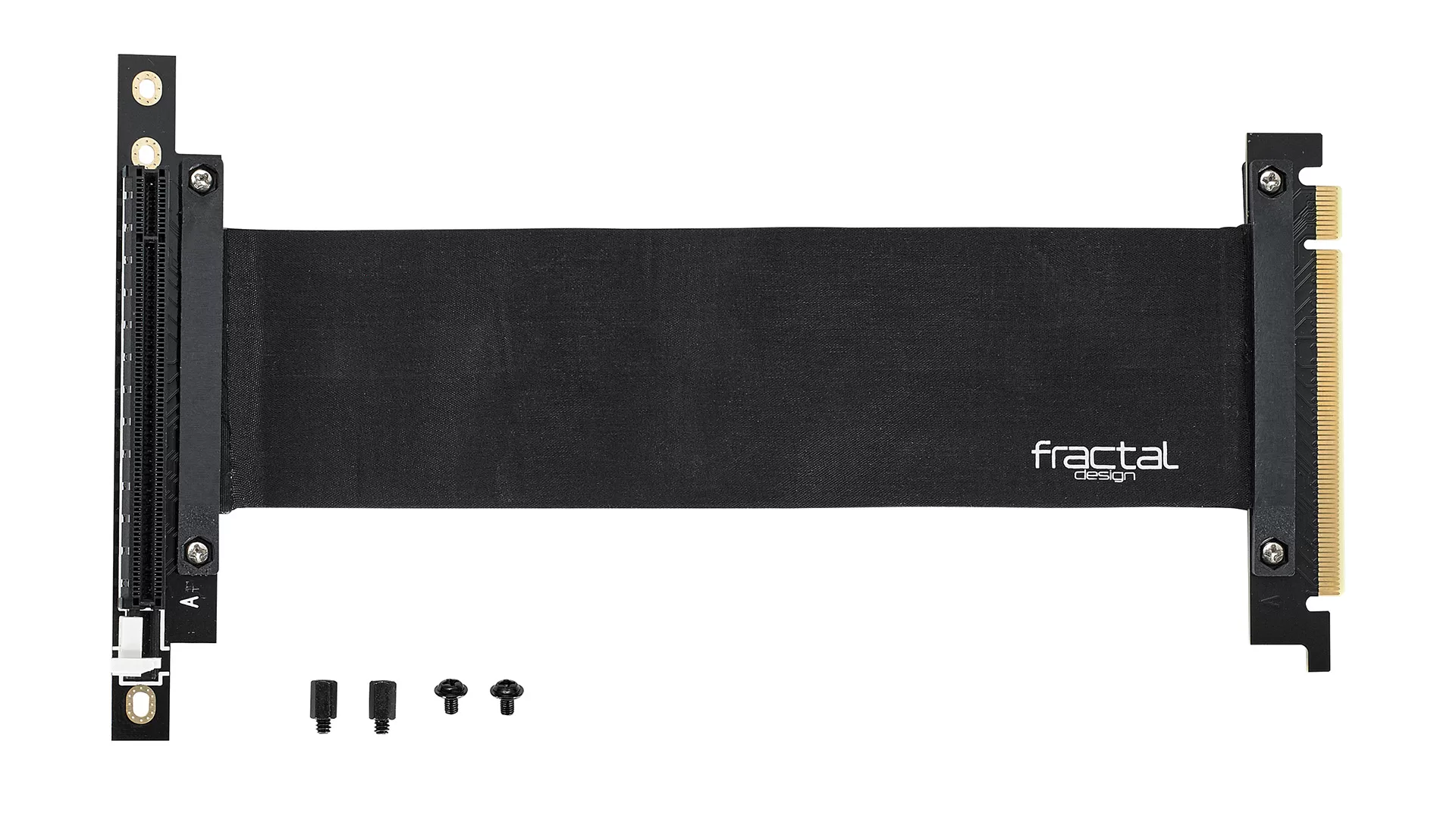 لقد أستخدمنا كابل Flex VRC-25 من Fractal Design لتثبيت البطاقة الرسومية بشكل عامودى و الذى يتميز بالجودة و الطول المناسب للأتصال باللوحة الرئيسية و مرفق مع مسامير التثبيت داخل الصندوق