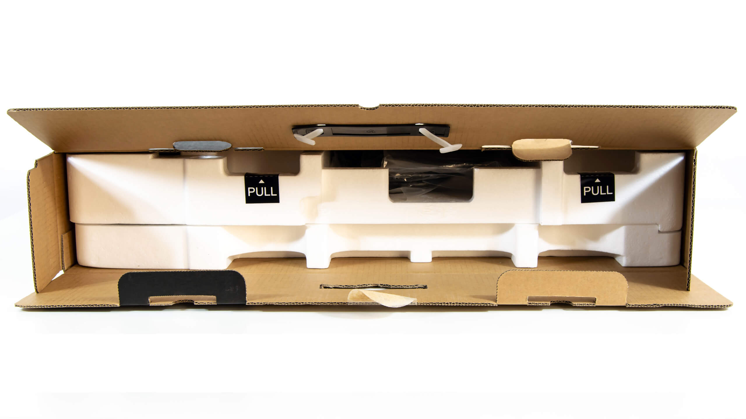 من الداخل تأتى الشاشة محاطة بطبقتين من الفوم المضغوط للحماية من الصدمات و تضع Gigabyte علامة استرشادية عند الجهة الصحيحة لفتح الصندوق و اخراج الشاشة بدلا من ان تخرجها معكوسة و تضرر الشاشة