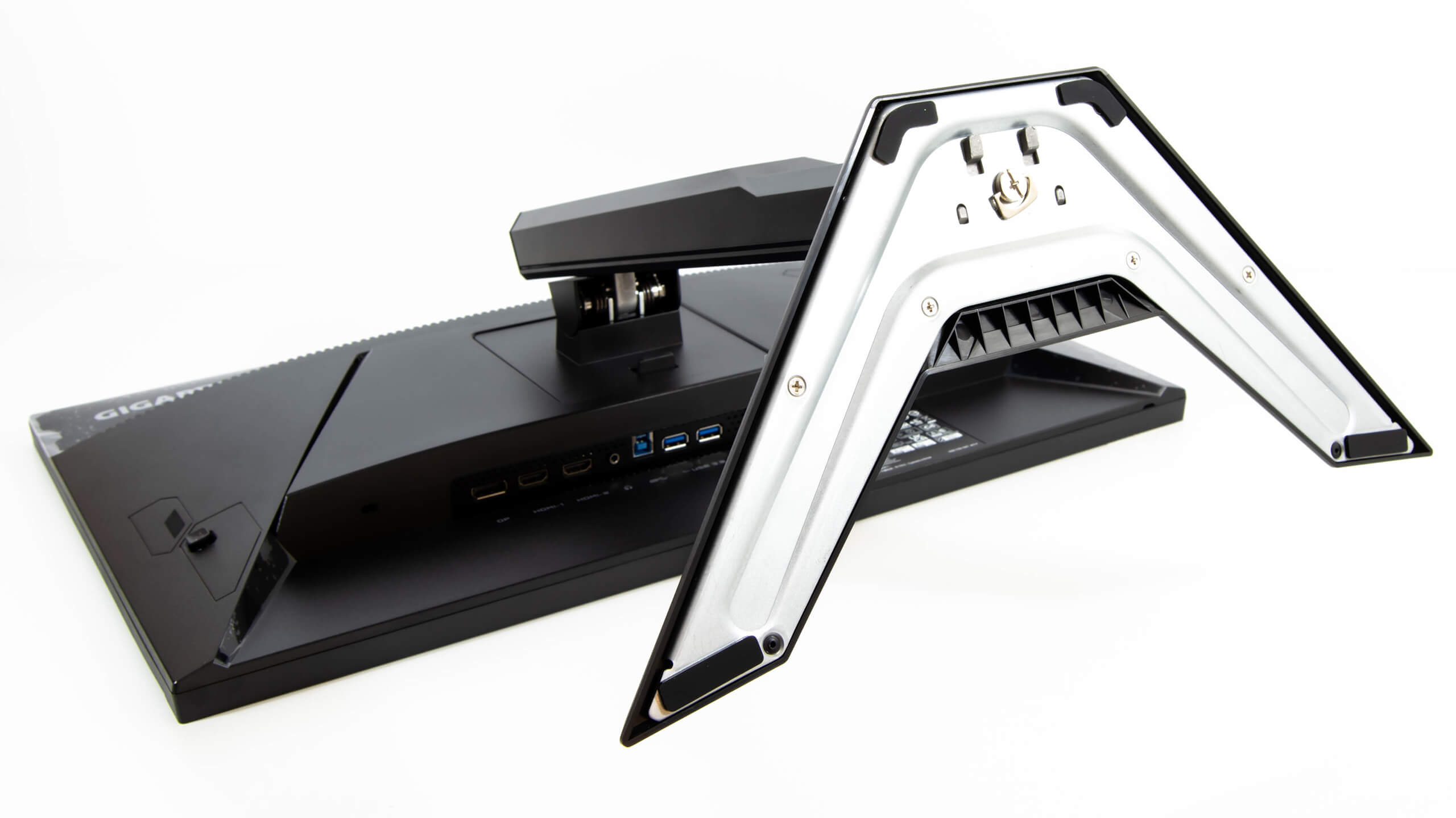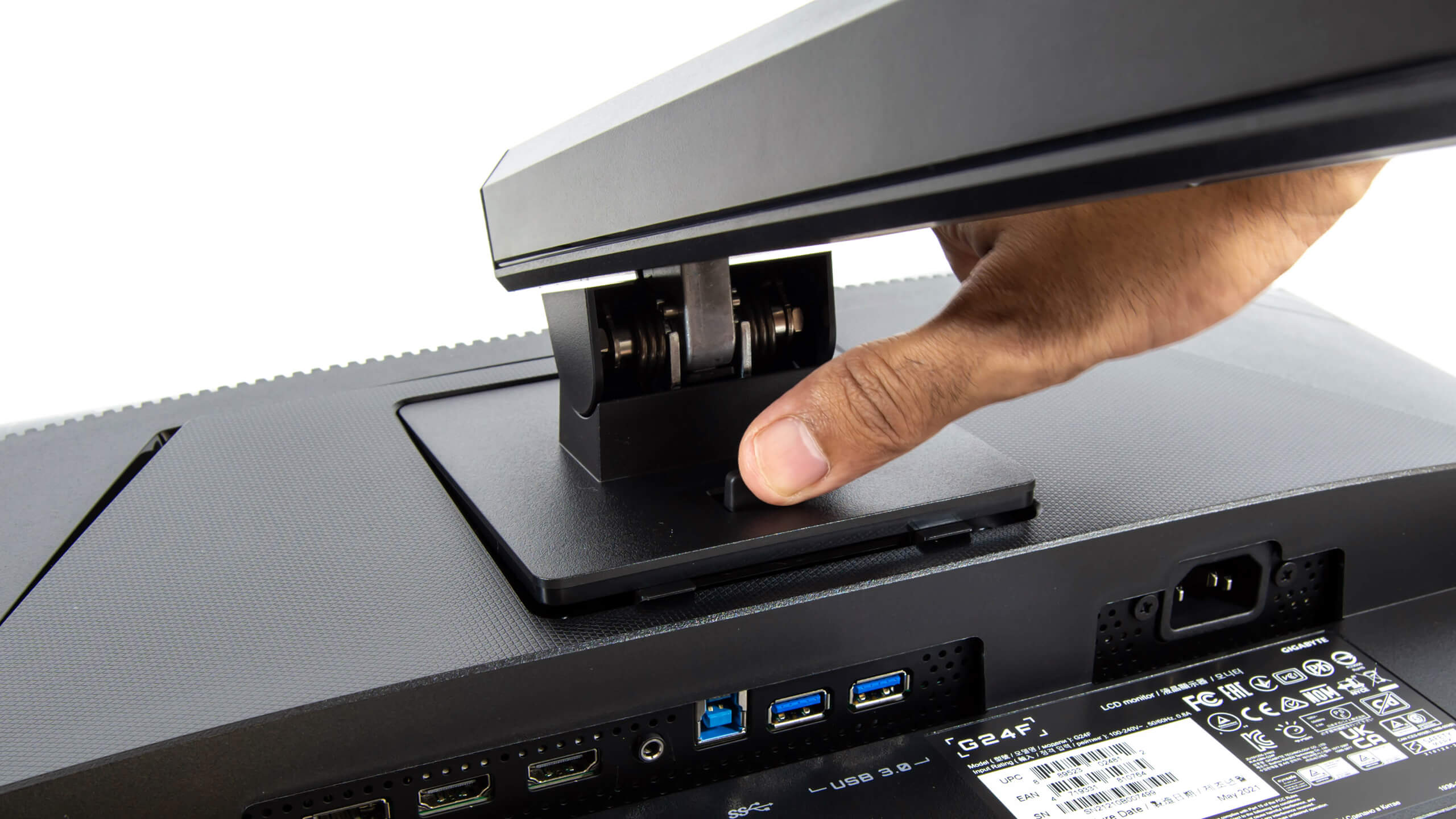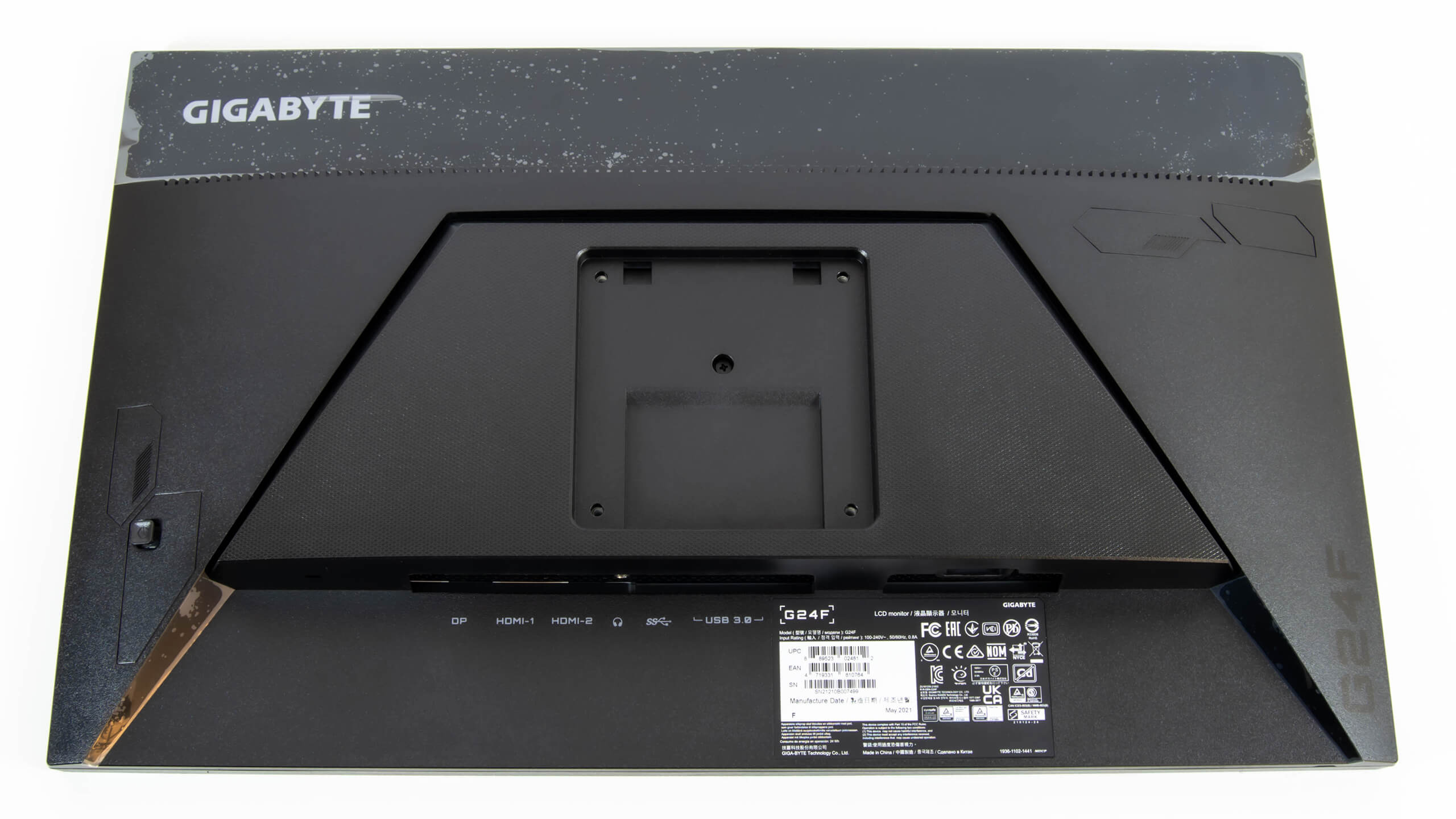 شاشة Gigabyte G24F تدعم VESA 100mm x 100mm و يمكن فك و تثبيت ذراع الحمل الخلفى من دون مسامير لتثبيت حامل VESA Mount لتثبيتها على الحائط أو تثبيت أكثر من شاشة على نفس المكتب
