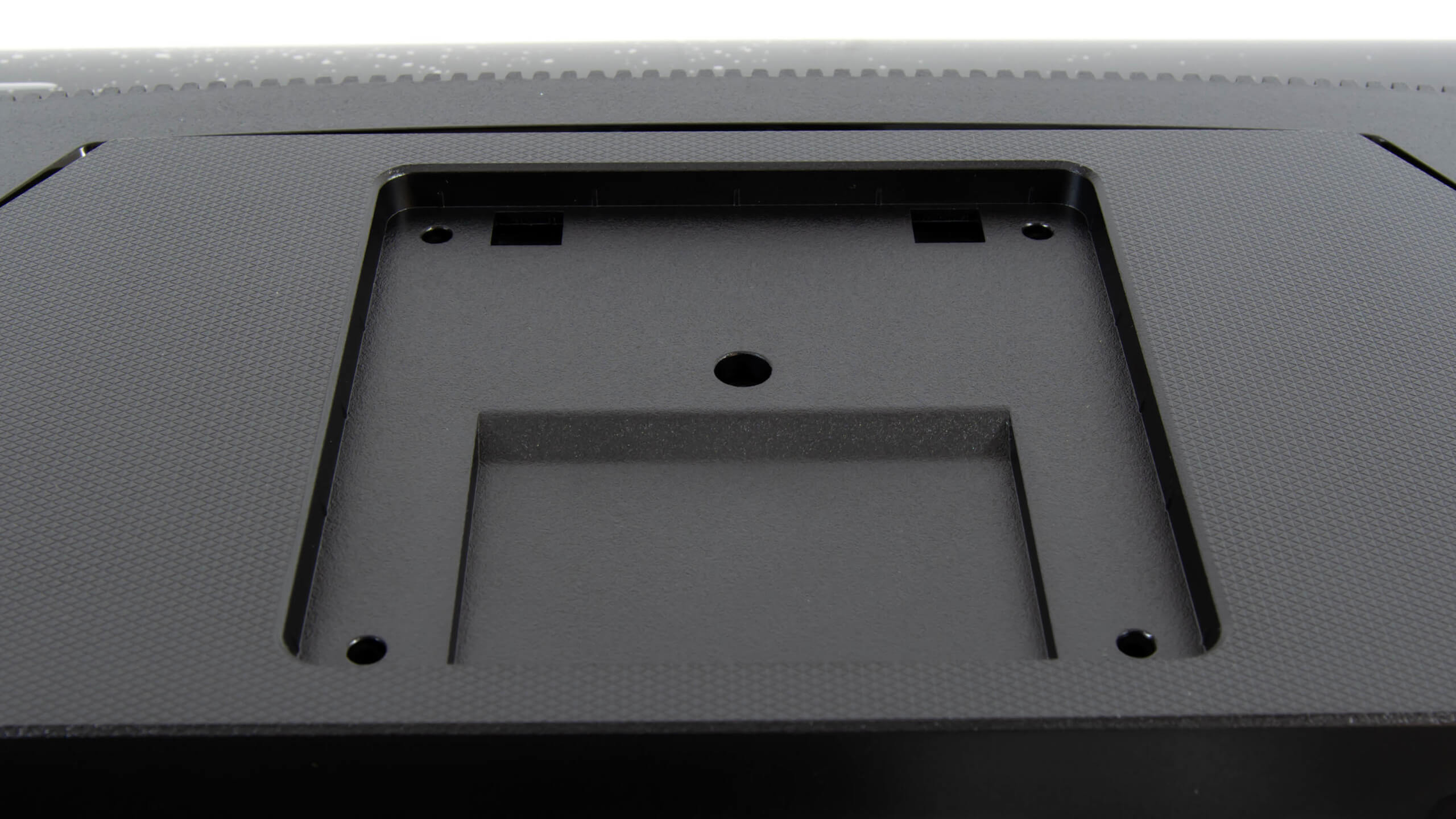 مكان التثبيت مجهز بأربعة فتحات للمسامير قبل وضحت سابقا لامكانية تثبيت الشاشة على حامل حائط أو على ذراع مكتبى بالاضافة الى وجود فتحات جانبية لتثبيت الذراع المرفق مع الشاشة