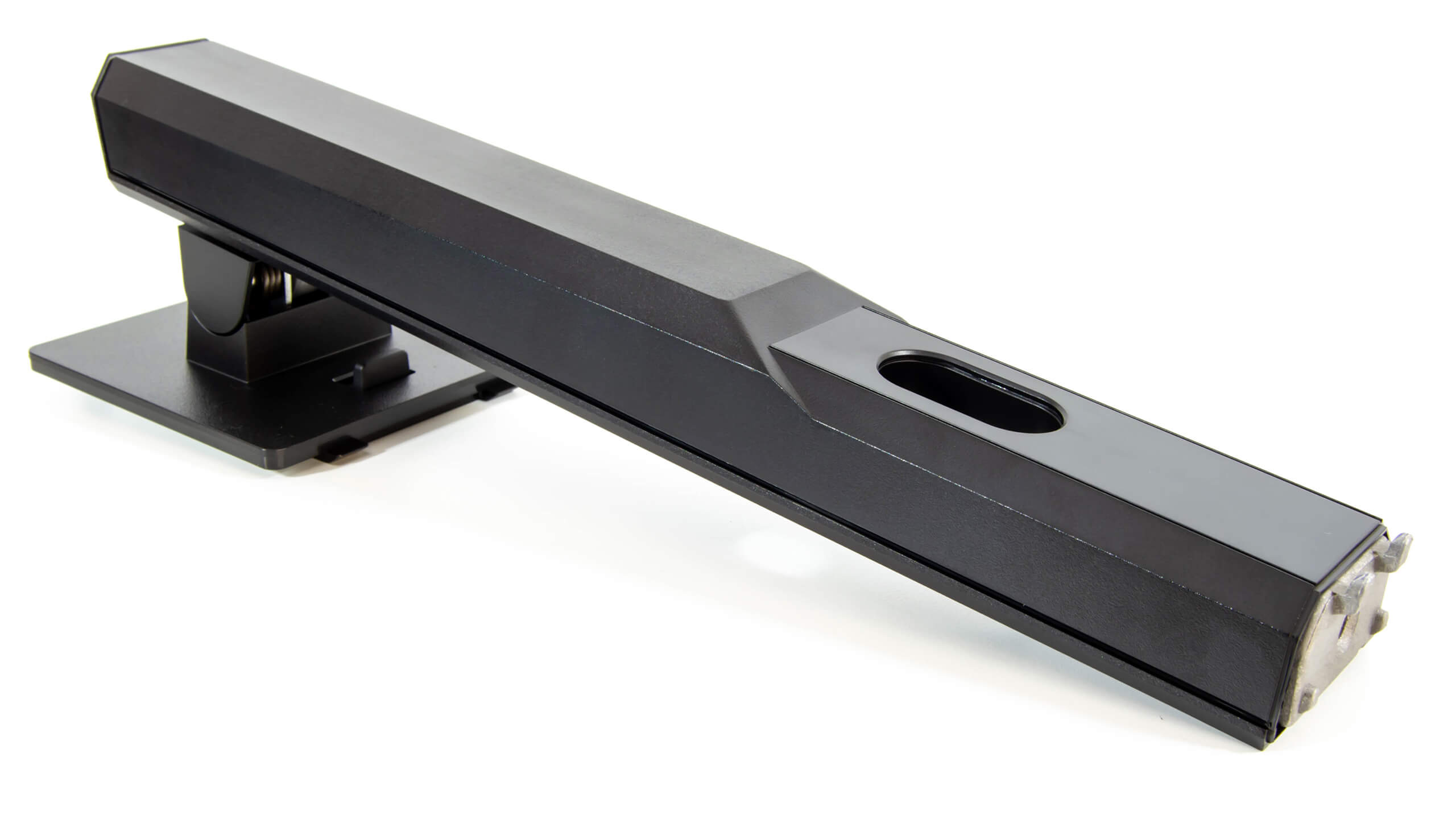 بعد وضع قاعدة التثبيت فى المكان المخصص لها فى الجزء الخلفى يتم الضغط على البنز الموجود اسفل القاعدة ليسمح باحكام تثبيت الذراع