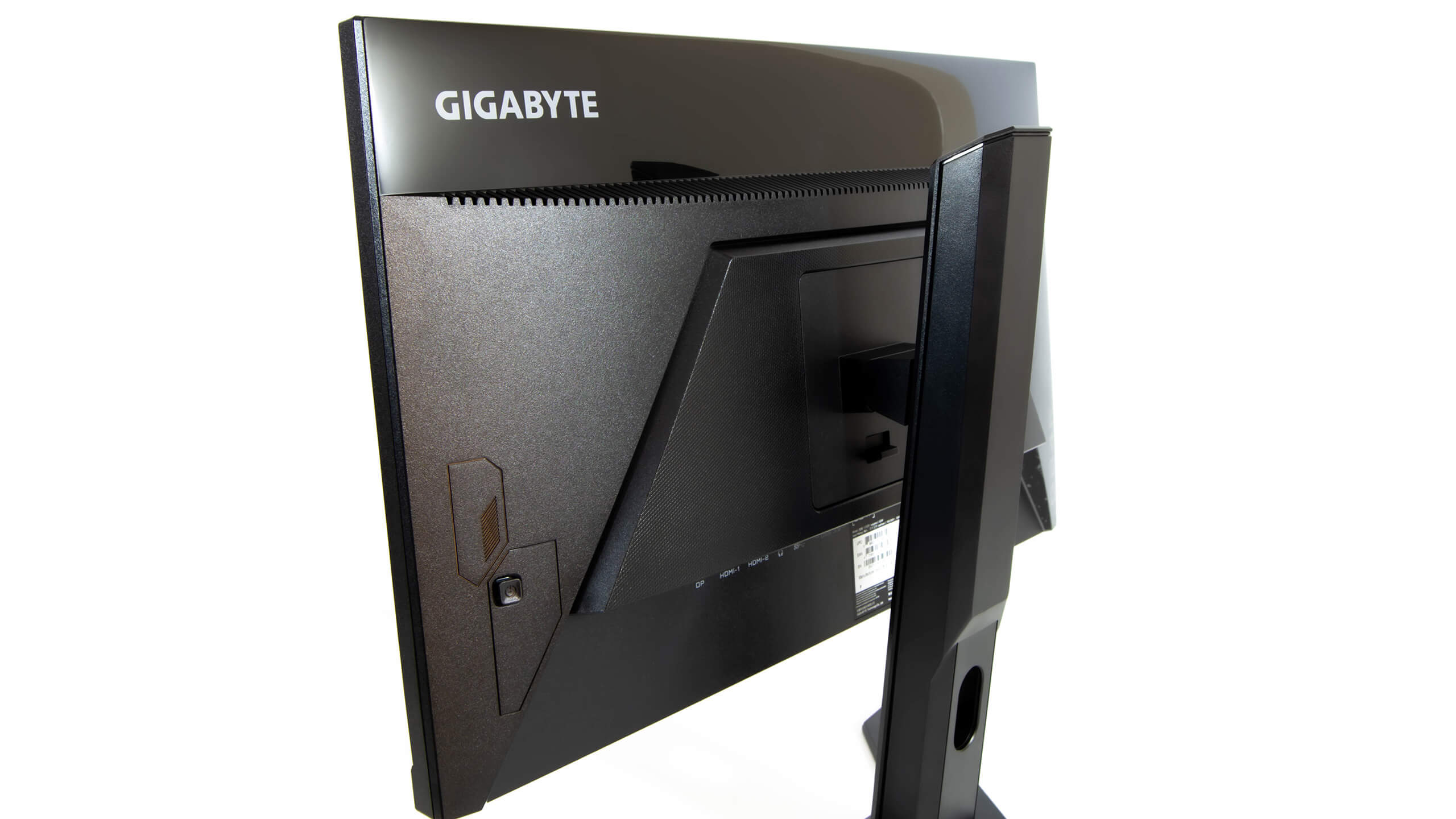 أما الجهة اليسرى الخلفية و هى الجهة المقابلة ليدك اليمنى عند جلوسك امام شاشة Gigabyte G24F يتواجد بها من الخلف زر عصا التحكم و هو نفسه زر تشغيل و ايقاف التشغيل و من نفس العصا الصغيرة يمكن التحكم فى اعدادات OSD للشاشة من خلال قائمة الاعدادات التى تظهر لك فى الجانب الايمن الاسفل للشاشة