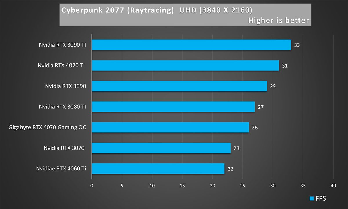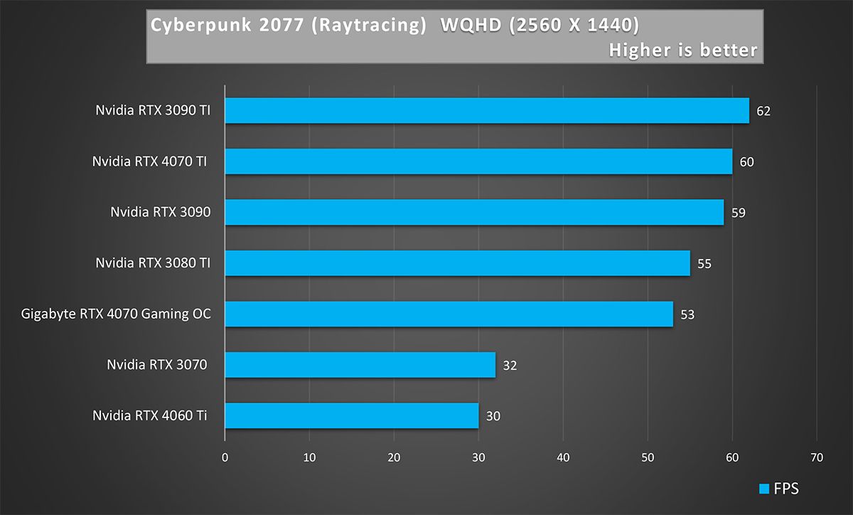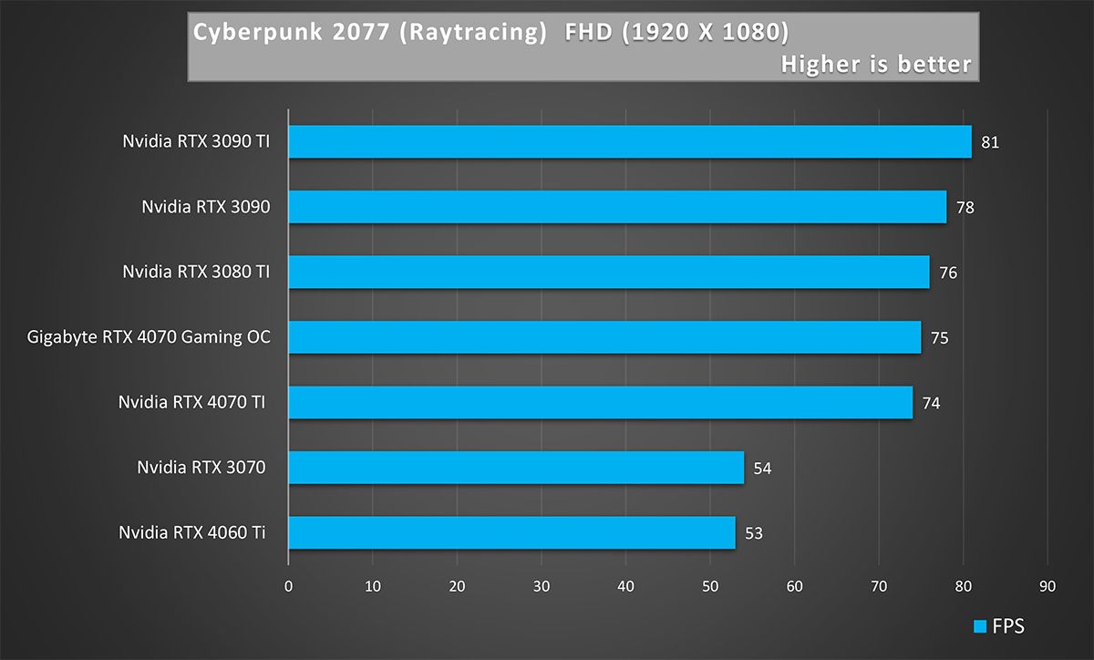 تم تطوير لعبة Cyberpunk 2077 باستخدام محرك REDengine 4 بواسطة فريق من حوالى 500 مطور و هو رقم تجاوز العاملين فى استوديو تطوير لعبة The Witcher 3: Wild Hunt و نختبر البطاقة الرسومية مع لعبة Cyberpunk 2077 فى المدينة الصينية و هى ثقيلة على المعالج الرسومى مع الكثير من الحركة و المؤثرات الرسومية و نضع البطاقة فى اختبار قاسى فى وضع فائق الجودة مع تمكين الظلال و تتبع الاشعة Raytacing