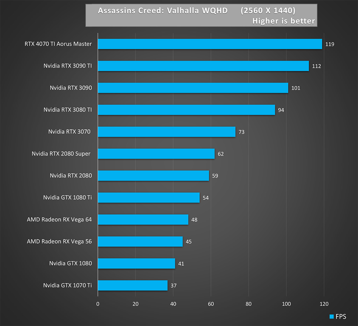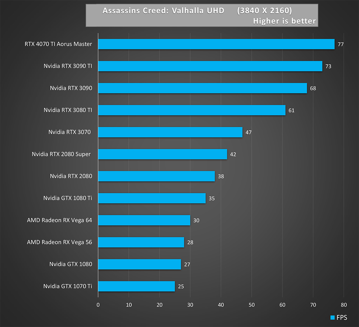 تدور أحداث لعبة Assassins Creed: Valhalla فى عام 873 بعد الميلاد و تروى قصة خيالية عن غزو الفايكنج لبريطانيا و يتحكم اللاعب فى شخصية Eivor و هو مهاجم من الفايكنج يصبح متورطا فى الصراع بين جماعة Brotherhood of Assassins و Templar Orderو نحن نختبر أداء البطاقة الرسومية مع اللعبة في إعدادات فائقة الجودة.