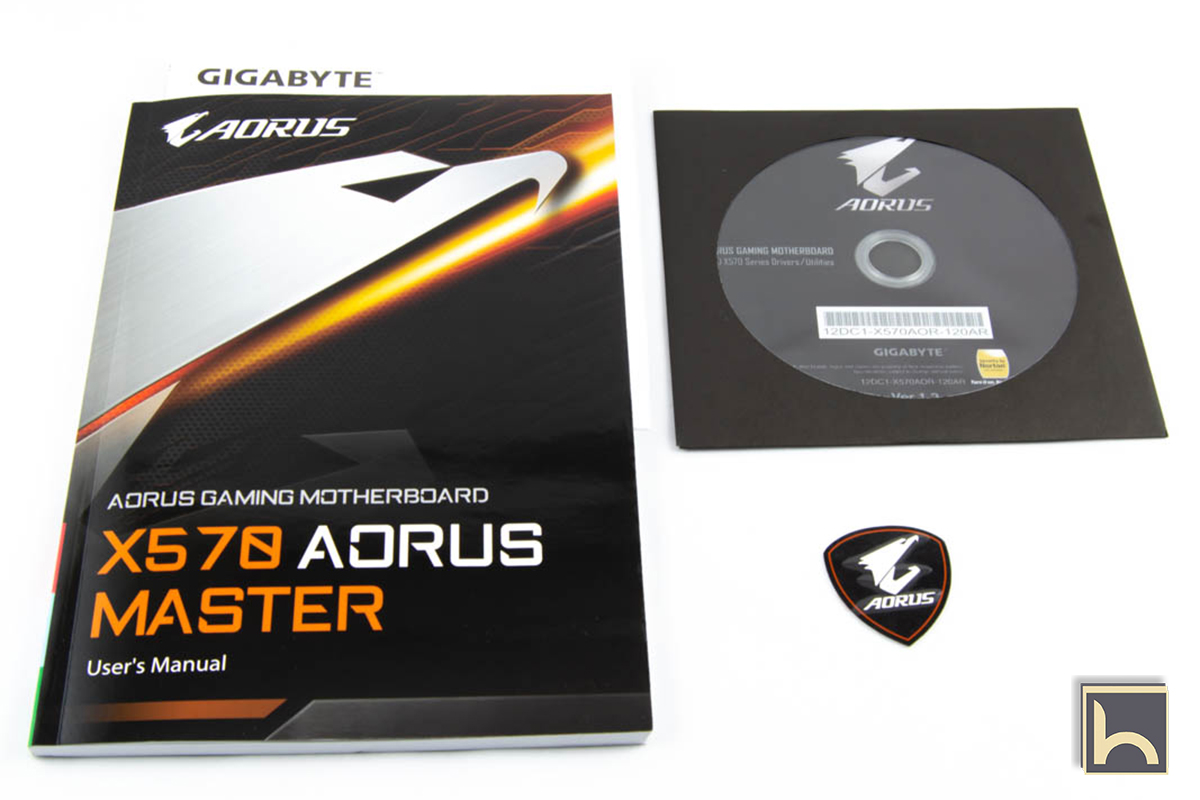 مثل كل اللوحات الرئيسية يرفق معها مجموعة من الملحقات المساعدة لتشغيل اللوحة نفسها و تختلف تلك الملحقات طبقا لمستوى اللوحة نفسها و بم ان اللوحة X570 Aorus Master تعتبر من لوحات القمة فياتى معها مجموعة كبيرة من الملحقات و ترفق Gigabyte مجموعة من كابلات SATA لتوصيل الهاردات و كابلات توصيل الكيسات لنظام الاضاءة RGB و مستشعرات اضافية لقياس درجات حرارة بعض المناطق و القطع على سطح اللوحة الرئيسية و احزمة لربط الكابلات و تنظيمها داخل الكيسة.