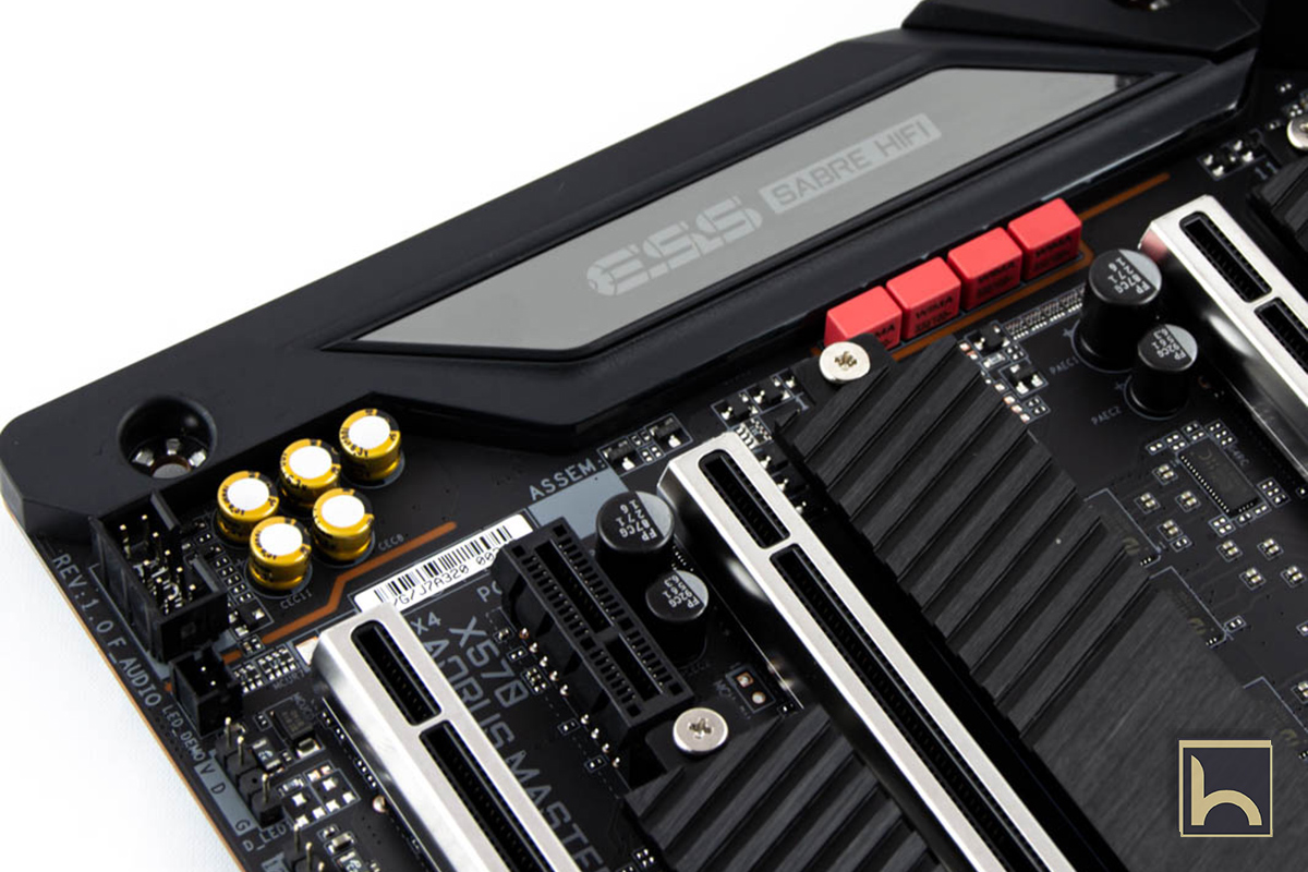 التقنيات الصوتية فى اللوحة الرئيسية عديدة فهى تحمل رقاقة Realtek ALC1220 التى توفر صوت عالى الوضوح 7.1 و قد تم تعزيزها مع بعض الكثفات عالية الجودة من شركة WIMA و مكثفات صوتية Fine Gold من شركة Nichicon لضمان الاستمتاع بجودة صوت تضاهى استديوهات الصوت المتخصصة مع مكبر صوت ذكى يقوم تلقائياً برصد مقاومة سماعات الرأس التى تستخدمها و ذلك لتقديم أفضل الآليات الصوتية المناسبة و هو ما يمنع العديد من المشاكل مثل انخفاض الصوت و تشتته هذا بالاضافة الى وجود محول الإشارات الصوتية ESS SABRE DAC ES9118 فكل هذه التقنيات تجعل تجربة الصوت على اللوحة الرئيسية تجربة رائعة