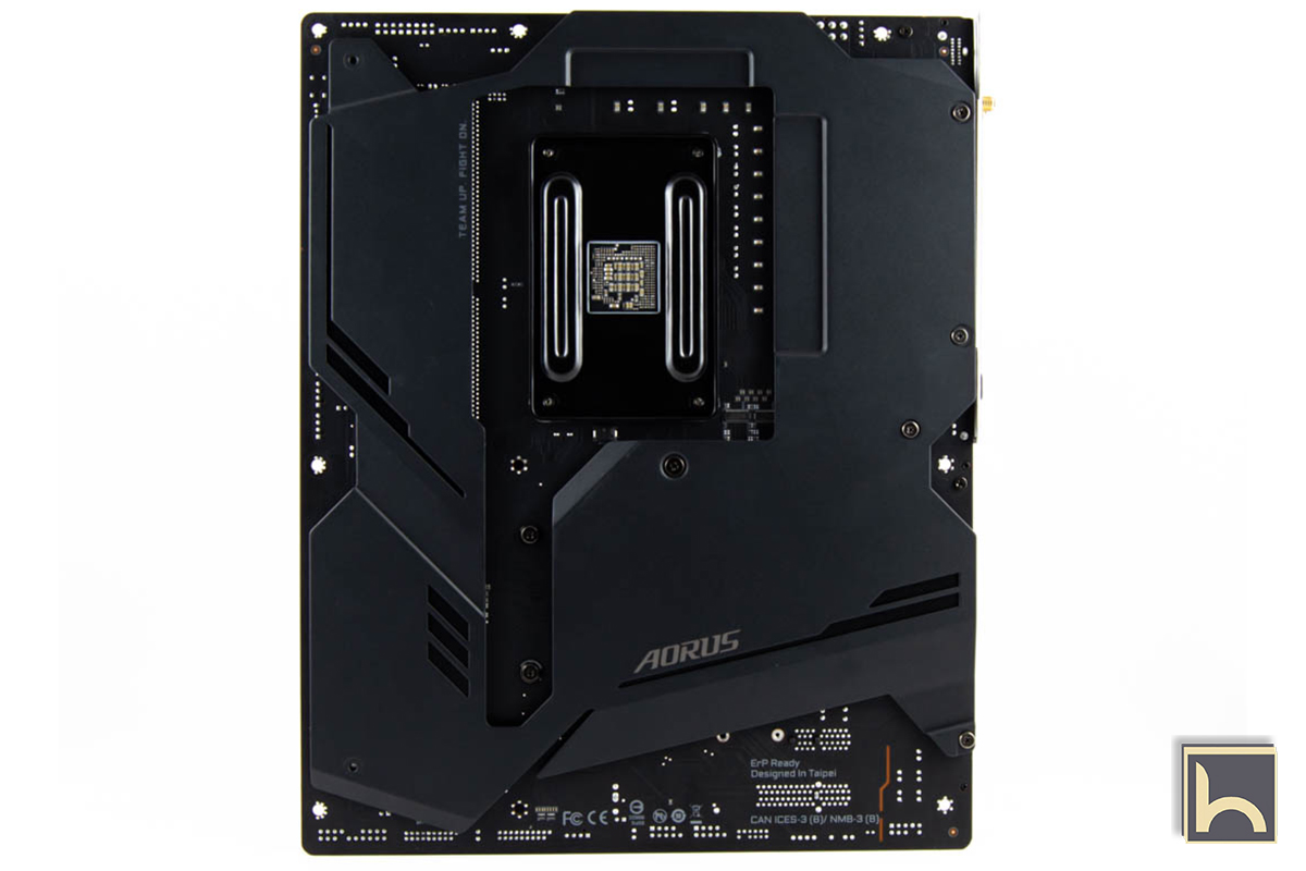 الدعم مطلوب أكيد للوحات القمة و تحتوى X570 Aorus Master على لوح معدنى فى الجزء الخلفى ليكون دعم لها و حمايتها من التقوس عند استخدام المبردات ثقيلة الوزن و أيضا له فائدة فى تبريد دائرة الطاقة سوف نوضحها فى الجزء الخاص بازالة الأغطية