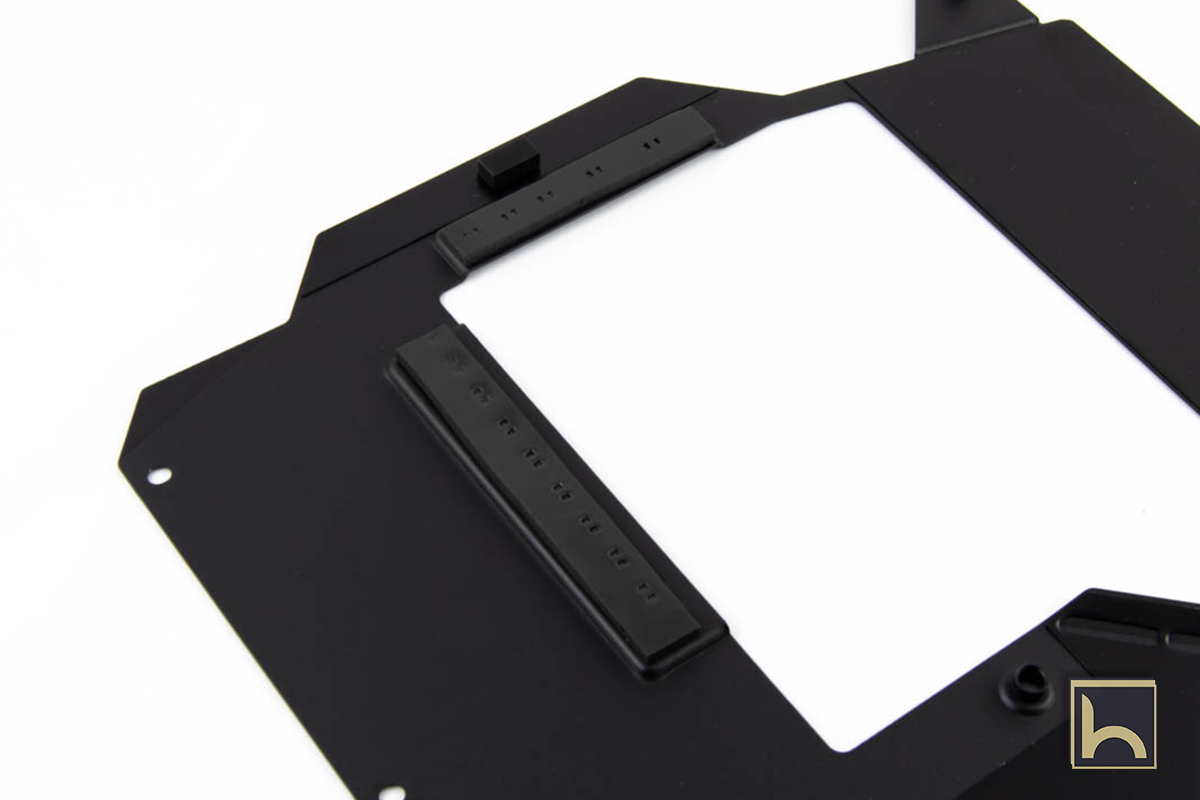 تبريد دوائر الطاقة ليس مسؤولية المشتت الأمامى فقط لكن اللوح المعدنى فى الخلف له دور أيضا فى التبريد و نرى وجود شرائح التبريد Thermal pad بين اللوحة المعدنى و للوحة X570 Aorus Master مباشرة على دوائر الطاقة لتبريدها من الخلف لفاعلية تبريد مضاعفة.