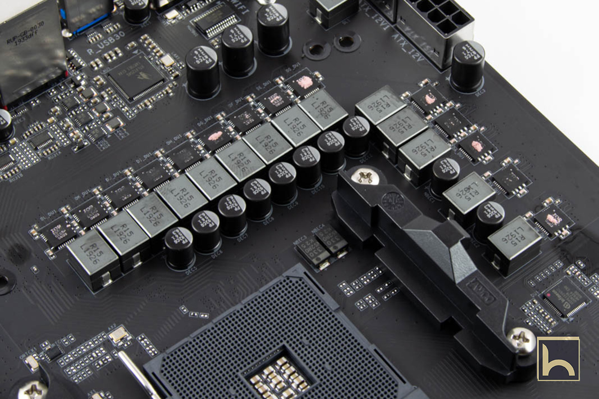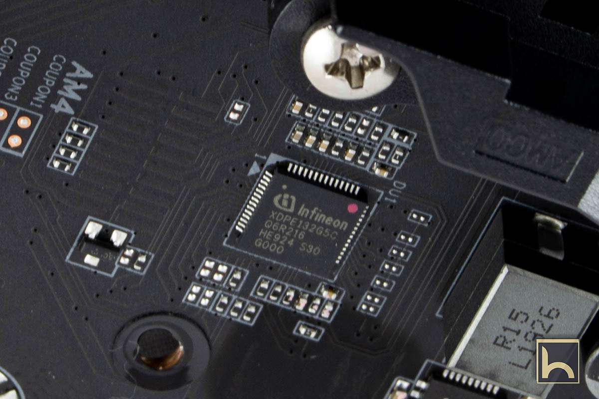 و يستخدم كل من CPU VCC و SoC VRMs International Rectifier 50A IR3556 PowIRstages ، ويتم التحكم فيه بواسطة وحدة التحكم PWM الرقمية من Infineon XDPE132G5C.