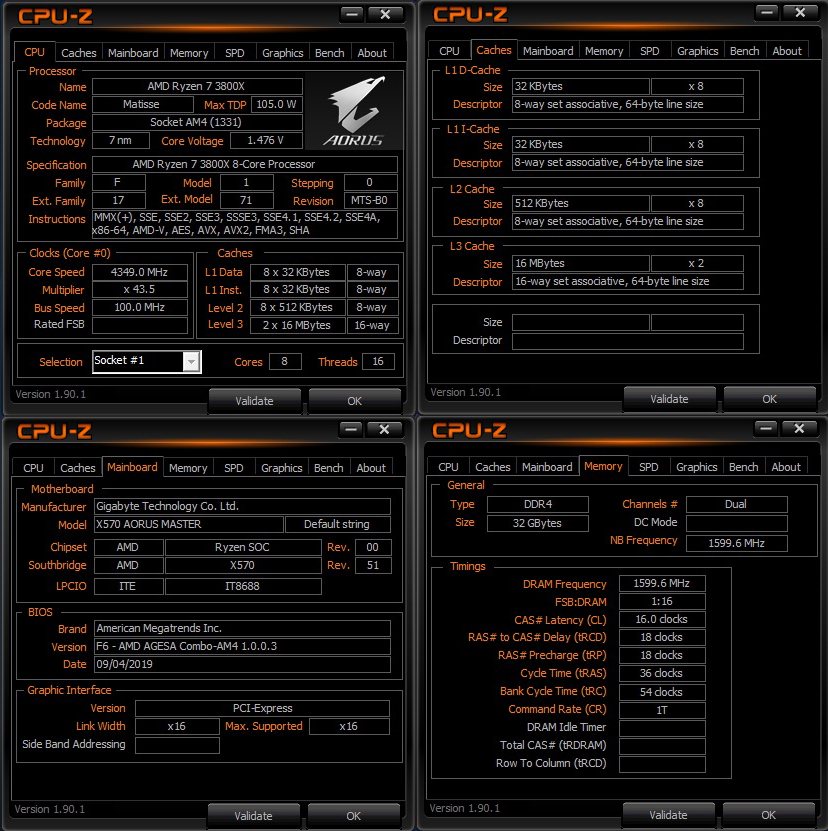 و قد تم زيادة تردد شرائح الذاكرة من 3200 الى 3800 بمقدار 600 MHz و هذه هى قدرة شرائح الذاكرة نفسها فى كسر السرعة سواء مع منصة X570 او حتى أى منصة أخرى قد تم تجربتها عليها نظرا لأن شرائح الميمورى هنا Hynix و قد كان رفع التردد مصحوبا برفع التوقيتات