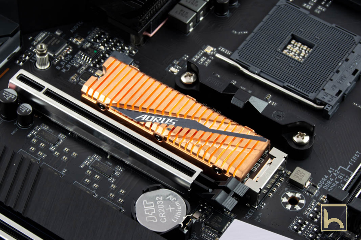 بما أن اللوحة الرئيسية تدعم أقراص الحالة الصلبة السريعة على أخرر اصدار Gen 4.0 فقد تم تثبيت قرص التشغيل الجيد AORUS NVMe Gen4 SSD 1TB و هو متوفر فى السوق بسعر 5000 جنيه لسعر 1 تيرابايت و 9500 جنيه لسعة 2 تيرابايت.