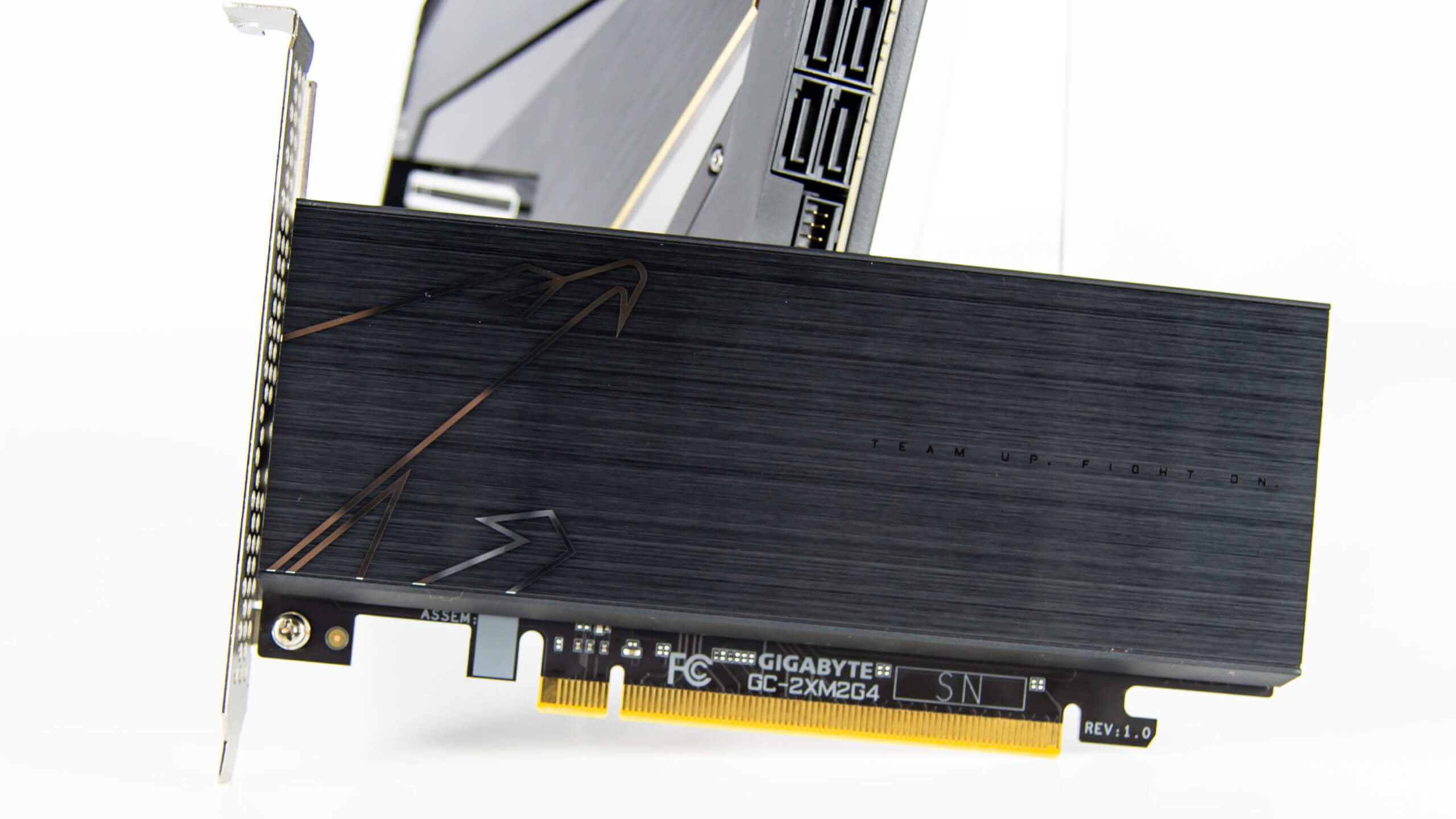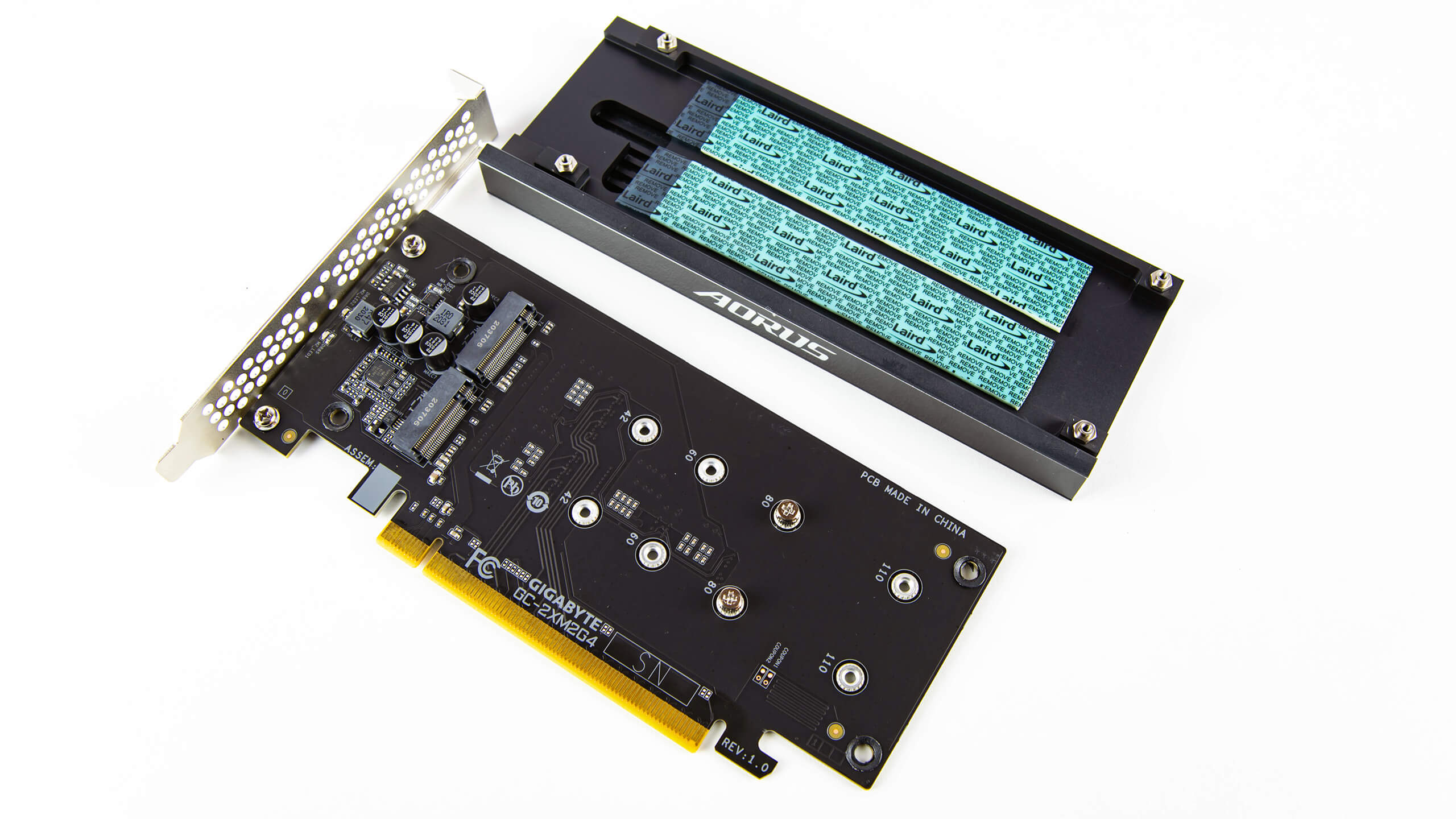 لدينا شىء رائع أخر وهو AORUS Gen4 AIC Adaptor الذى يوفر مقابس M.2 اضافية خارج اللوحة الرئيسية بدعم Gen 4.0 على لوحة أساسية تدعم مقبسين M.2 توفر حلول تبريد بالاعتماد على وسادات حرارة متعددة لتبريد جانبى محرك التشغيل M.2 X4 Gen 4.0