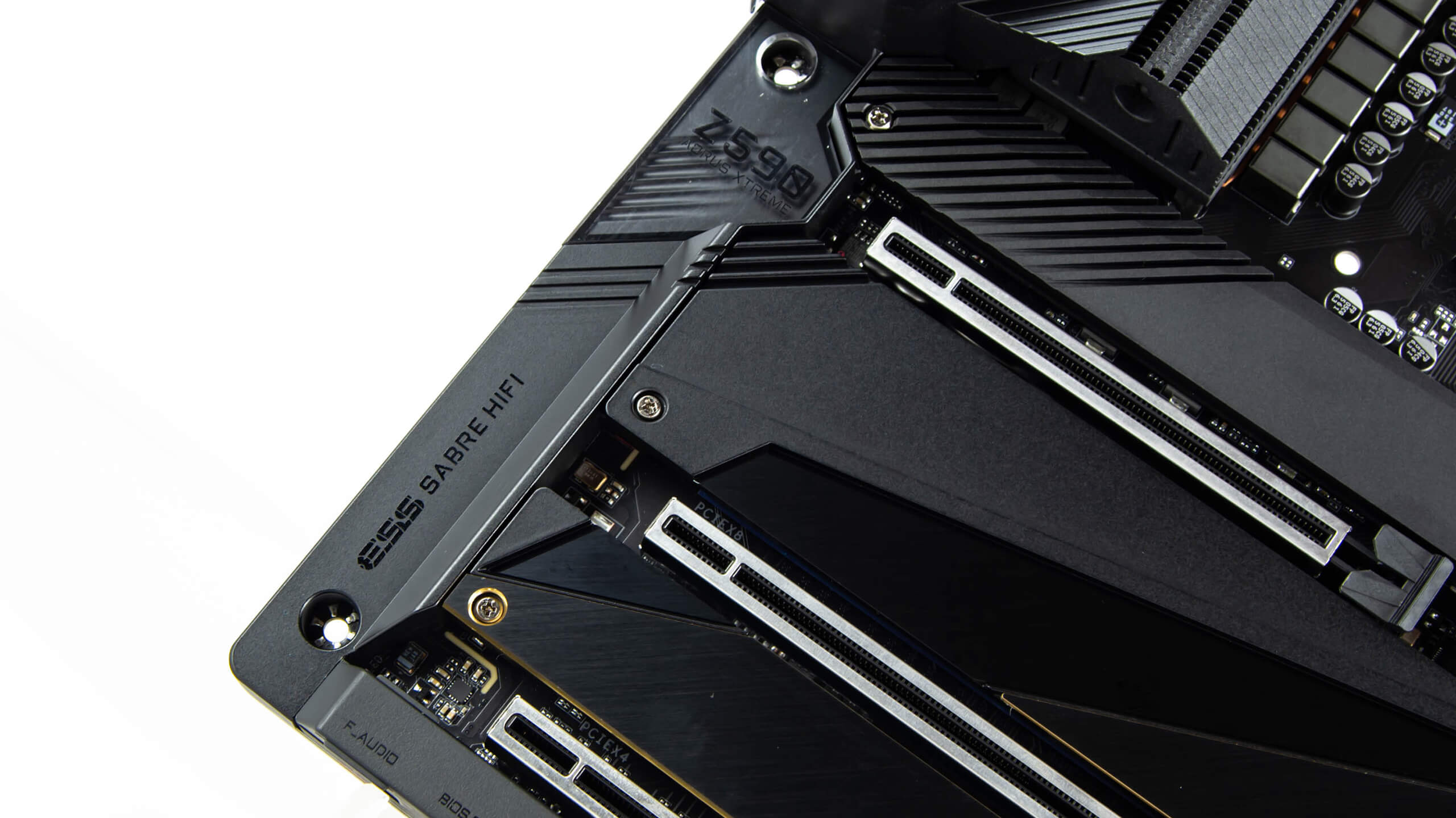 لوحة Z590 Aorus Xtreme لديها تصميم هادى فلن ترى الكثير من رؤوس توصيل المراوح أو رؤوس توصيل الاضاءة فهى ليست مزدحمة بالمكونات فى المناق المكشوفة بعيدا عن خافضات الحرارة حتى و سترى ان مساحة تثبيت المبردات ليست كبيرة اعتمادا على عدم وضع المكثفات بشكل عشوائى و من النظر اليها سترى انها هادئة حتى فى تركيبة الالوان المستخدمة مع الأجزاء اللامعة
