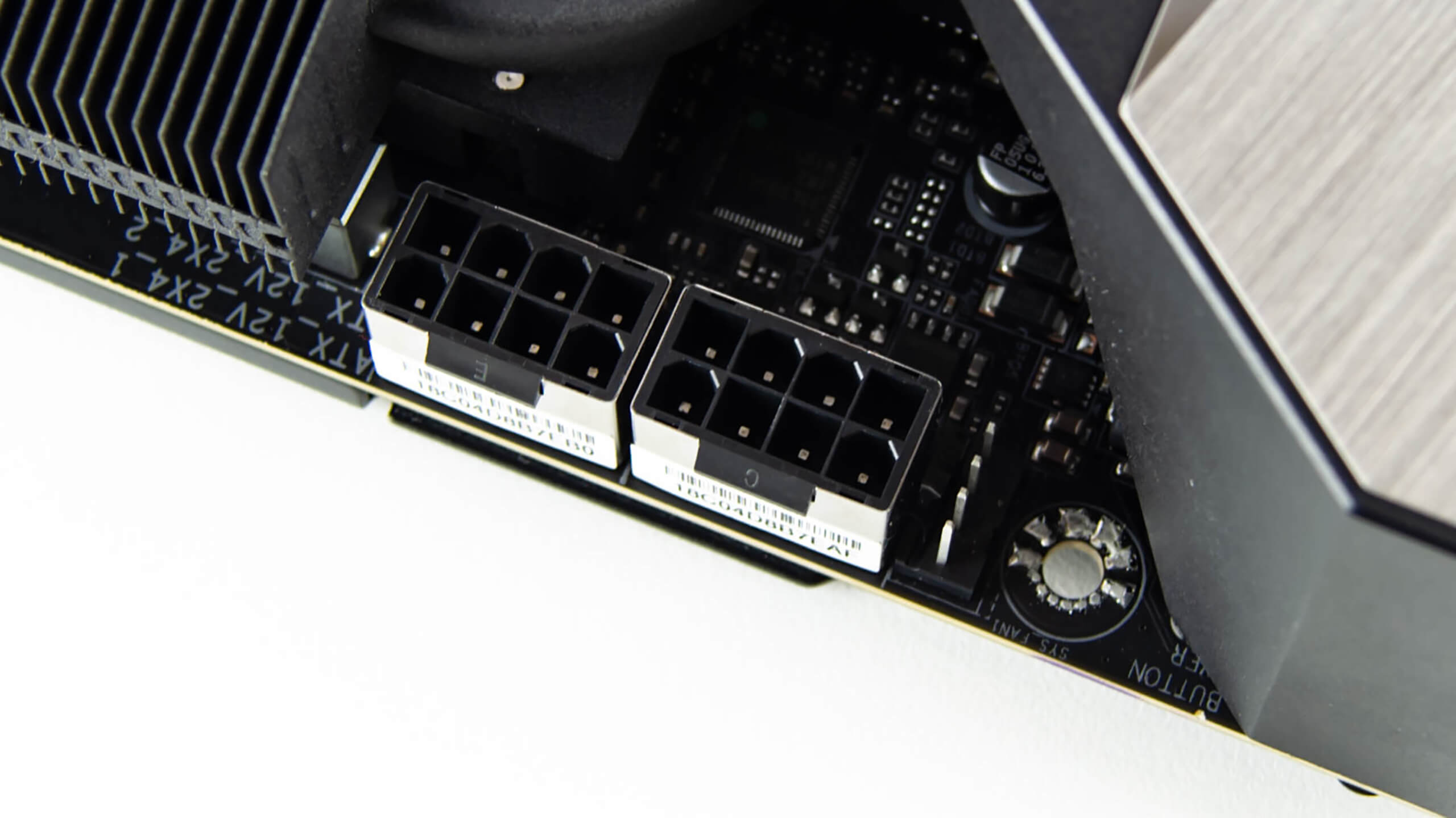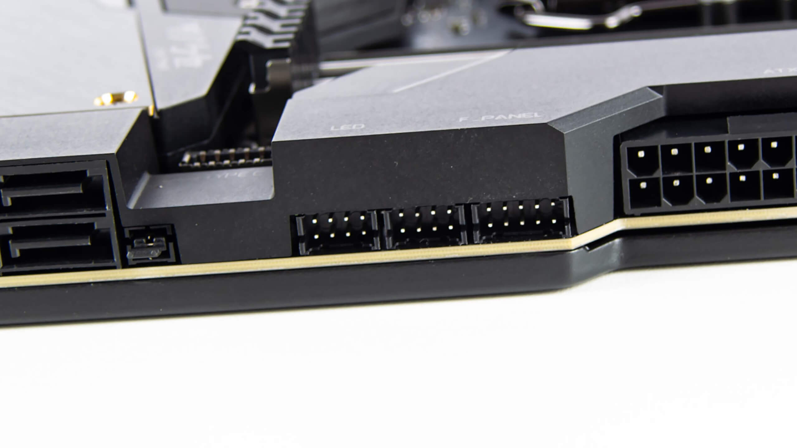تقريبا هذا هو الموصل الوحيد المكشوف على اللوحة أن لم أكن مخطىء فهو موصل طاقة المعالجات و تأتى اللوحة Aorus Xtreme بموصلين 8 بن و كان من الممكن اضافته للجانب الأيمن مثلما تفعل EVGA فى لوحة DARK التى تأتى كافة المقابس أفقية