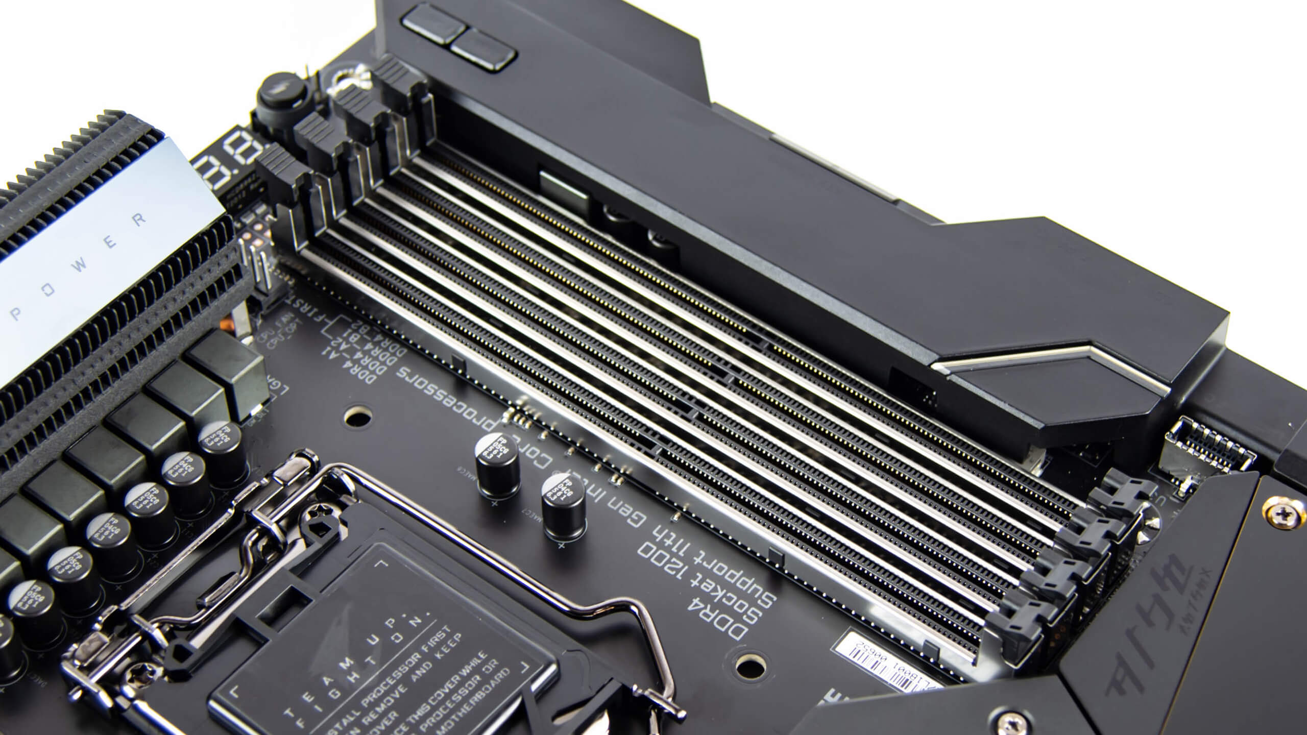 أربعة شقوق لشرائح الذاكرة مدعمة بدروح الحماية الفولاذية لزيادة صلابة الشقوق عند تثبيت أو شد شرائح الذاكرة بقوة أكثر من اللازم و لأتصال متماثل مع لوحة الدوائر الخاصة بنا و تدعم اللوحة ترددات ذاكرة تصل الى 5400 MHz مكسورة السرعة مع الوضع فى الأعتبار ان التردد المعتمد من انتل على معالجات الجيل الحادى عند 3200 ميجاهرتز