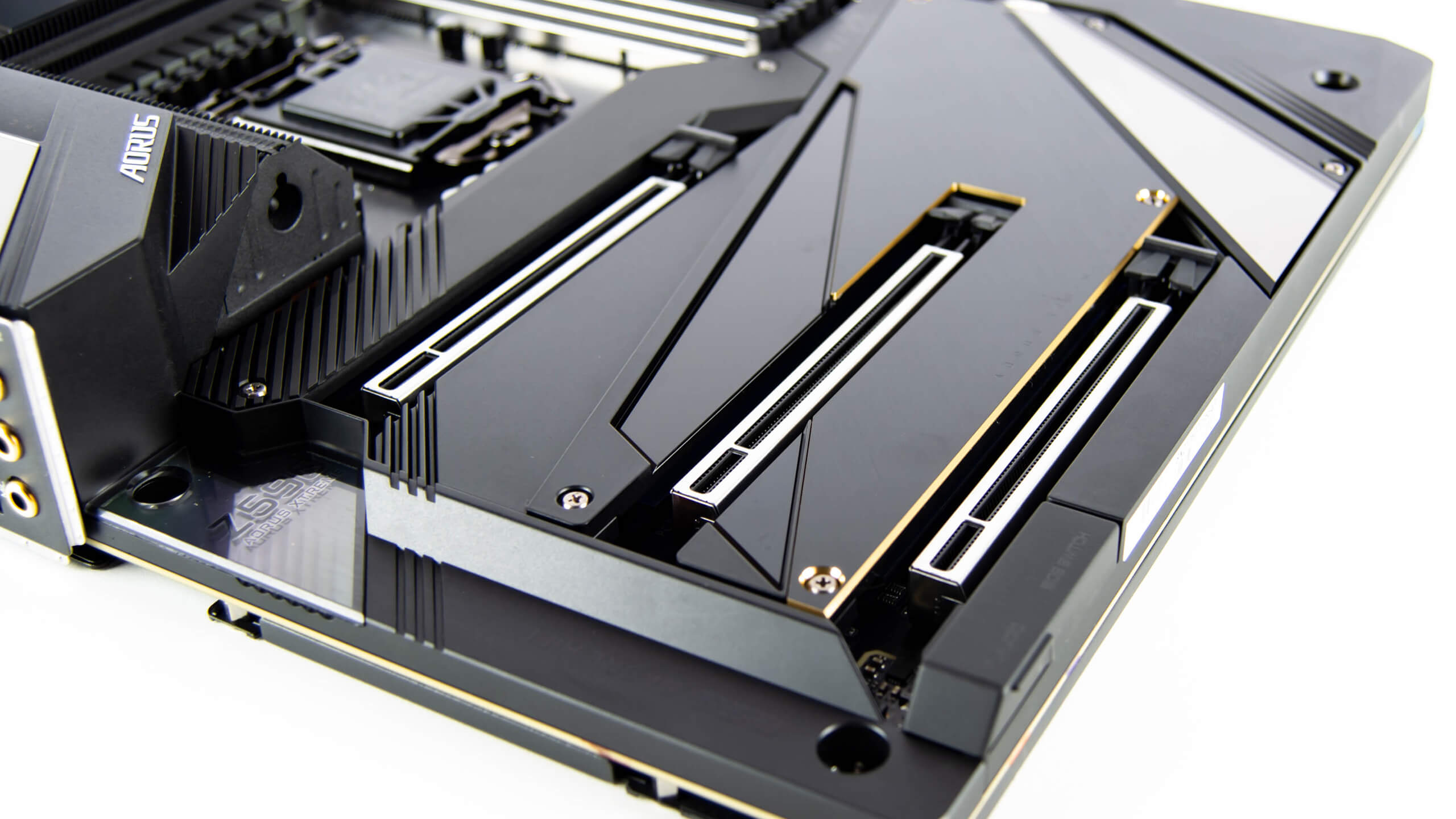 تحتوى لوحة Z590 Aorus Xtreme على ثلاثة رؤوس توصيل محركات التشغيل M.2 مع دعم Gen 4.0 على الاول و يستمد مساراته الاربعة من المعالج و الثانى ايضا يدعم Gen 4.0 لكن مع X4 من الشريحة الأم اما الأخير فهو مازال على الاصدار الأقدم 3.0 و يتشارك فى X4 من المسارات مع منفذ PCIe الأخير
