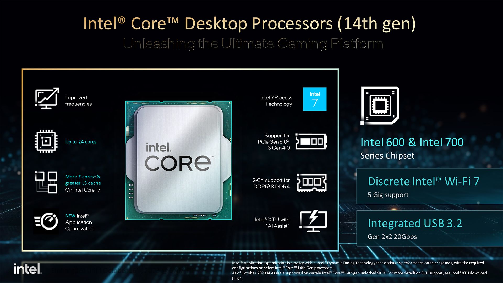 أطلقت Intel فى أكتوبر سلسلة معالجات الجيل الرابع عشر لسطح المكتب و تعتمد المجموعة الجديدة التى تحمل الاسم الرمزى Raptor Lake Refresh على معمارية Raptor Lake من Intel و الذى تم استخدامها من قبل فى معالجات الجيل الثالث عشر و قد أستفادت Intel من مزيد التحسينات فى التصنيع من اجل الوصول الى أفضل اداء للشرائح و الاهم هنا أن Intel تحافظ على نفس اسعارها لمعالجات Core i9 وi7 وi5 دون زيادة عن الجيل السابق
