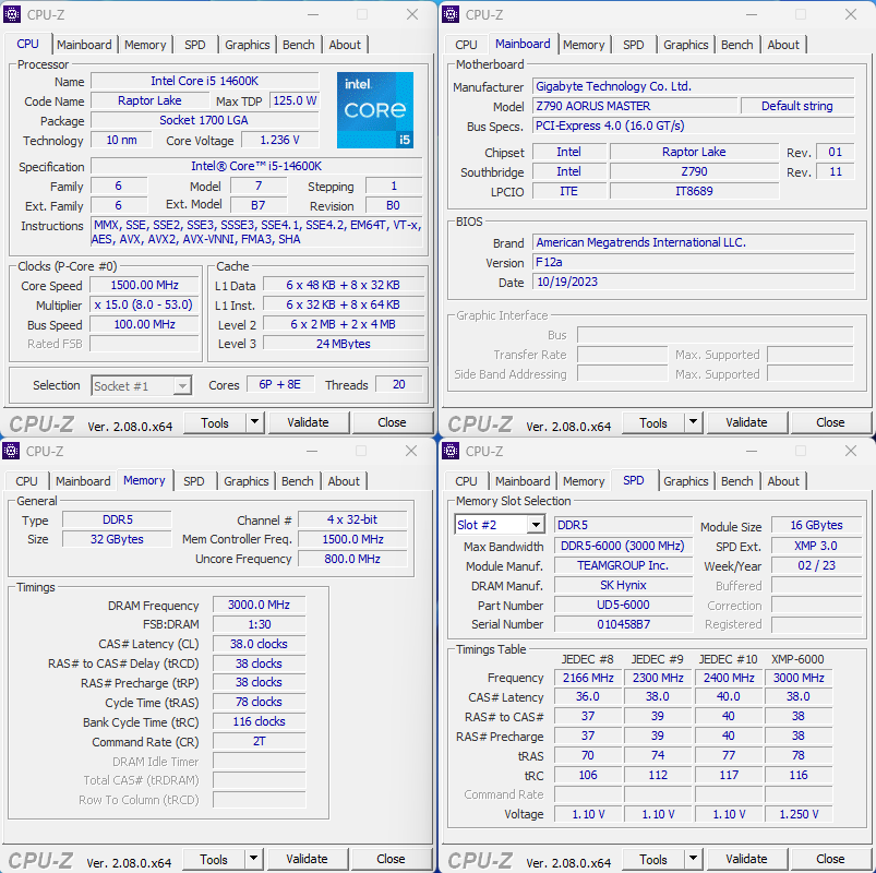 قبل البدء فى عرض ما توصلنا اليه اثناء أختباراتنا لمعالج Core I5 14600K نتحدث عن منصة الأختبار الخاصة بنا فنحن نرى أن معالجات الجيل الرابع عشر تدعم العمل على اللوحات الرئيسية بشريحة Z790 و Z690 و بالفعل نستخدم اللوحة الرئيسية Z790 Aorus Master و تدعم منصة Intel الجيل الرابع عشر ذاكرة DDR5 فقد اضافنا بالطبع فى اختباراتنا و هى من XPG بتردد 7200 MHz بالاضافة الى محركين تشغيل M.2 لتجارب اضافية نظرا لان اللوحة تدعم اربعة شقوق M.2 Gen 4.0 و تتكون منصة الاختبار لدينا من التالى