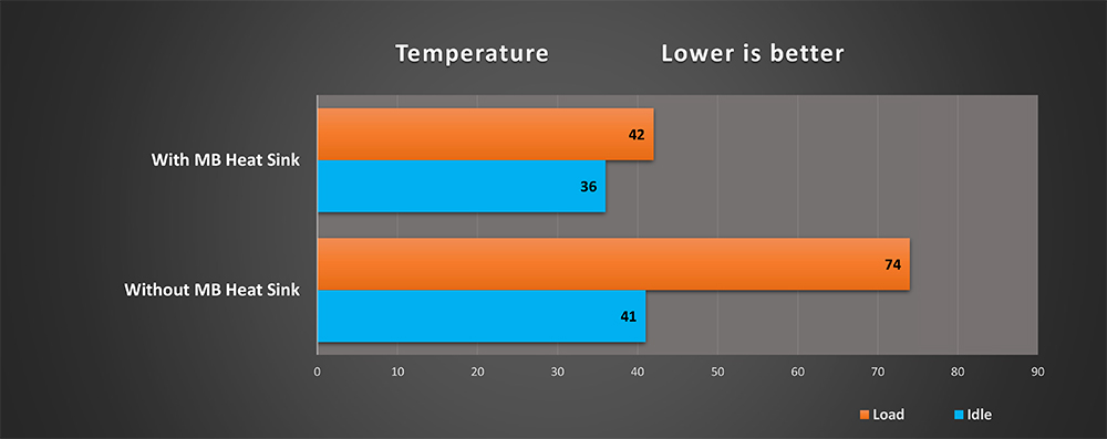 يعمل المحرك بكفاءة حيث بلغت أعلى درجة حرارة أثناء أقصى حمل على وحدة التخزين 42 درجة اثناء الأختبارات و بلغ متوسط الحرارة أثناء العمل و اللعاب 36 درجة و كلاهما بعيدين عن الحد الأقصى لدرجات الحرارة لوحدة التخزين و هى 70 درجة مئوية.