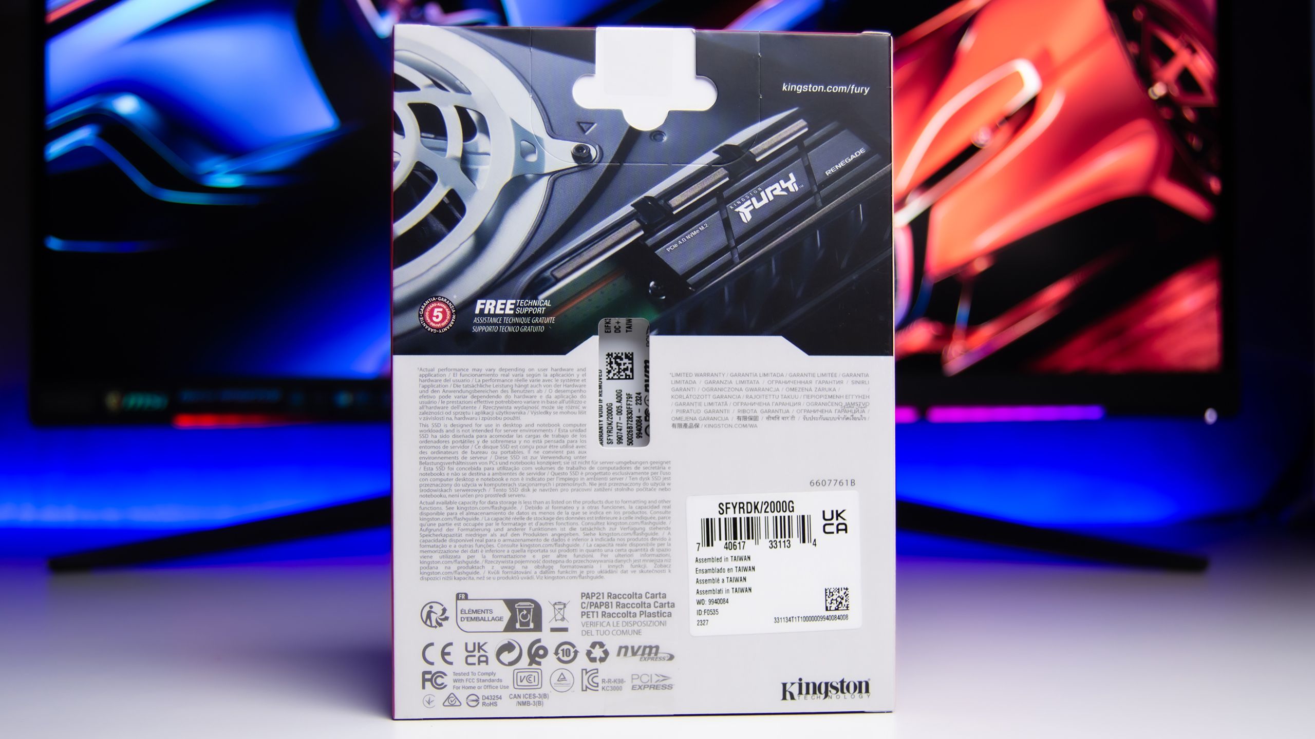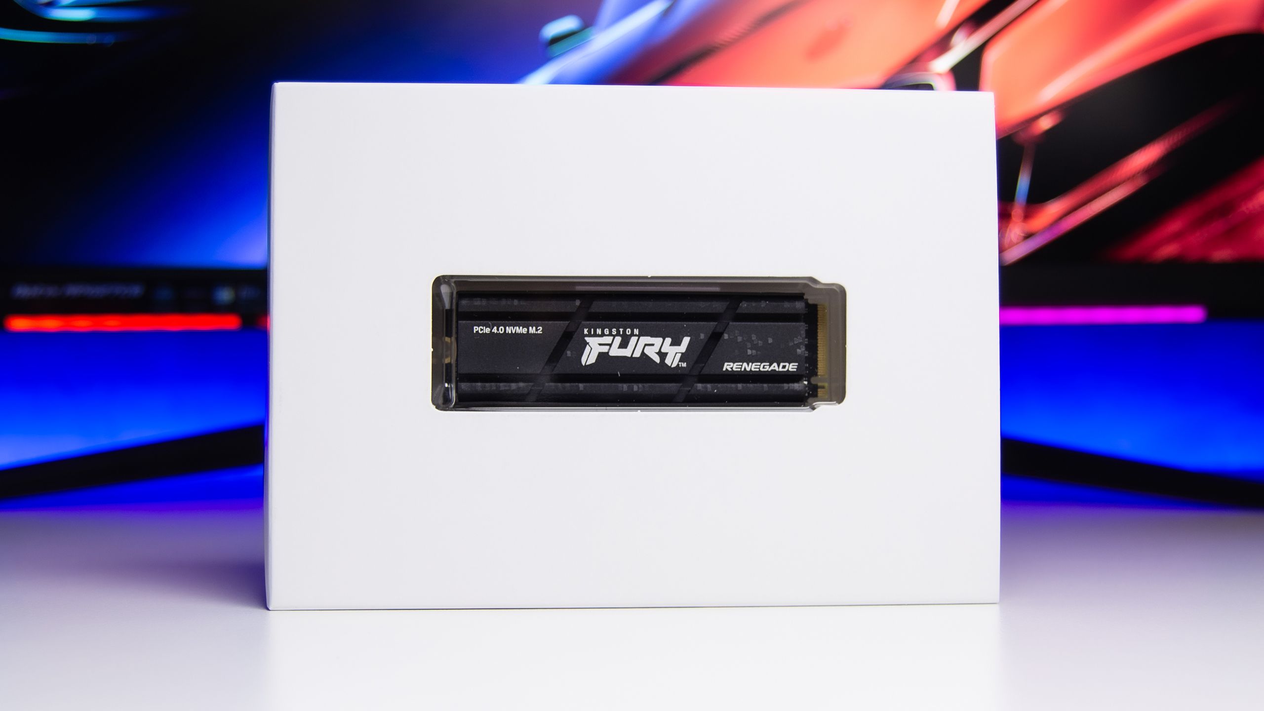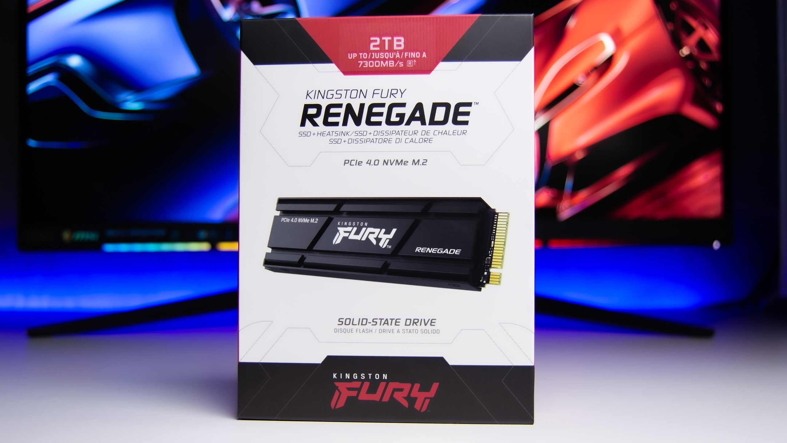 تباع وحدة التخزين Fury Renegade فى غلاف أنيق من الكرتون و يحمل صورة واضحة لوحدة التخزين مع عبارات توضح سعة التخزين و السرعة و توافقها مع معيار PCIe 4.0