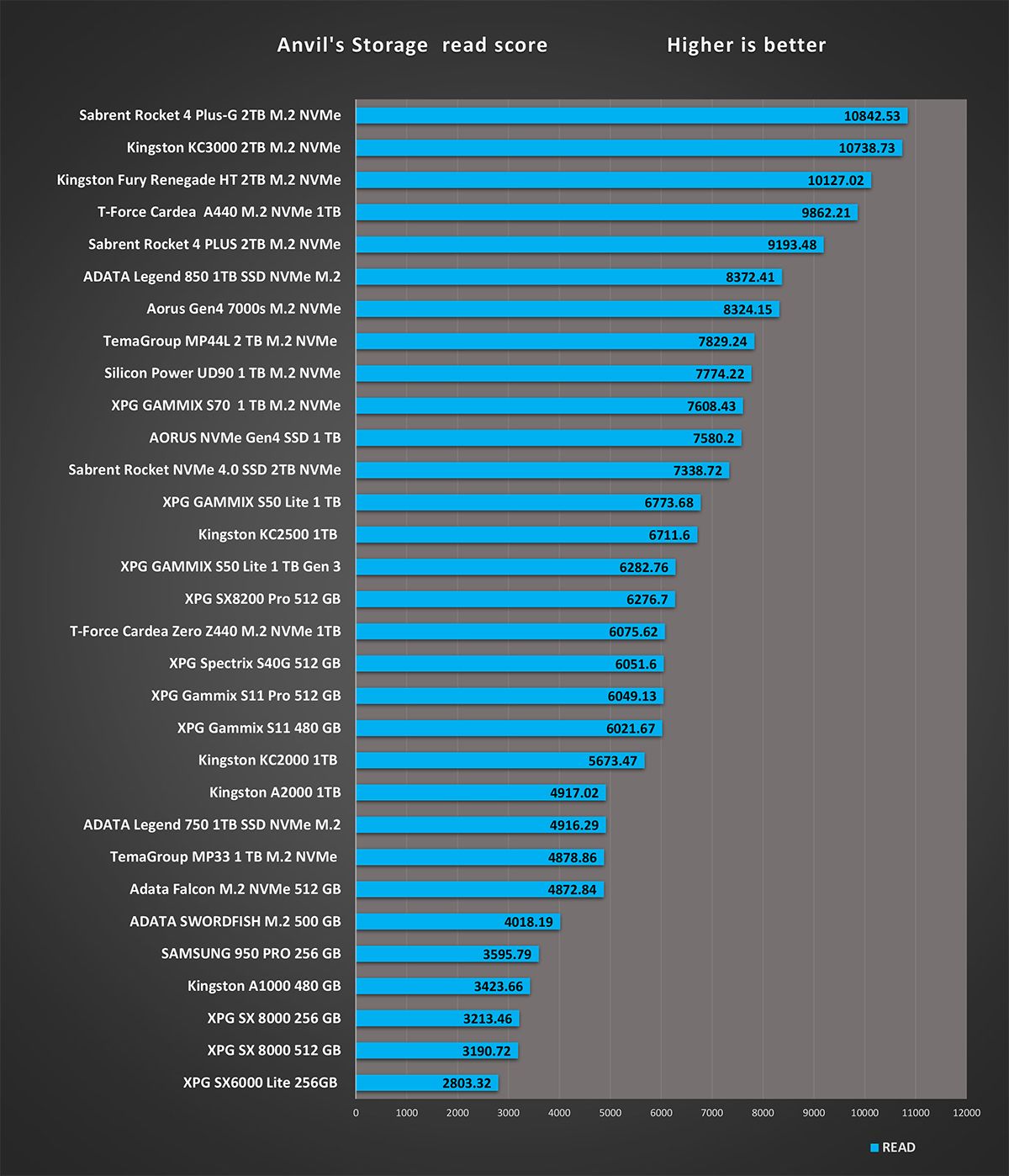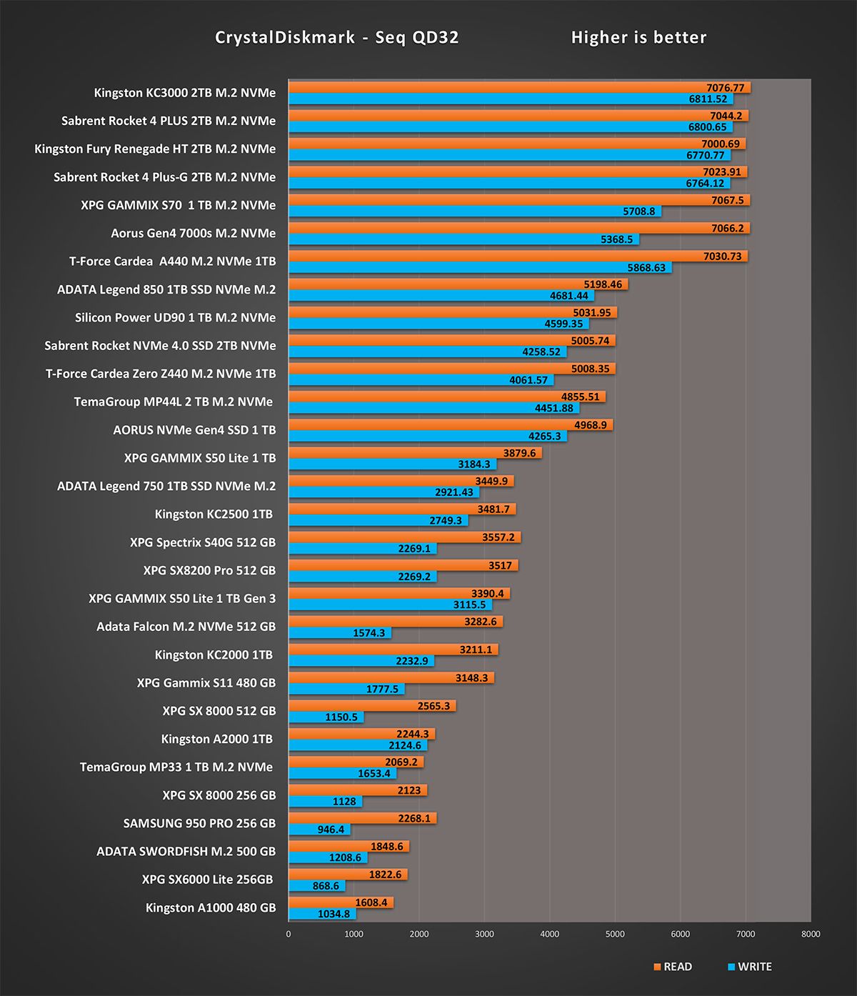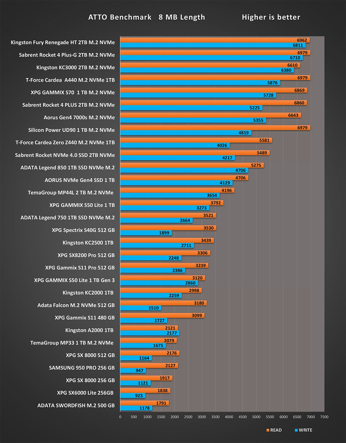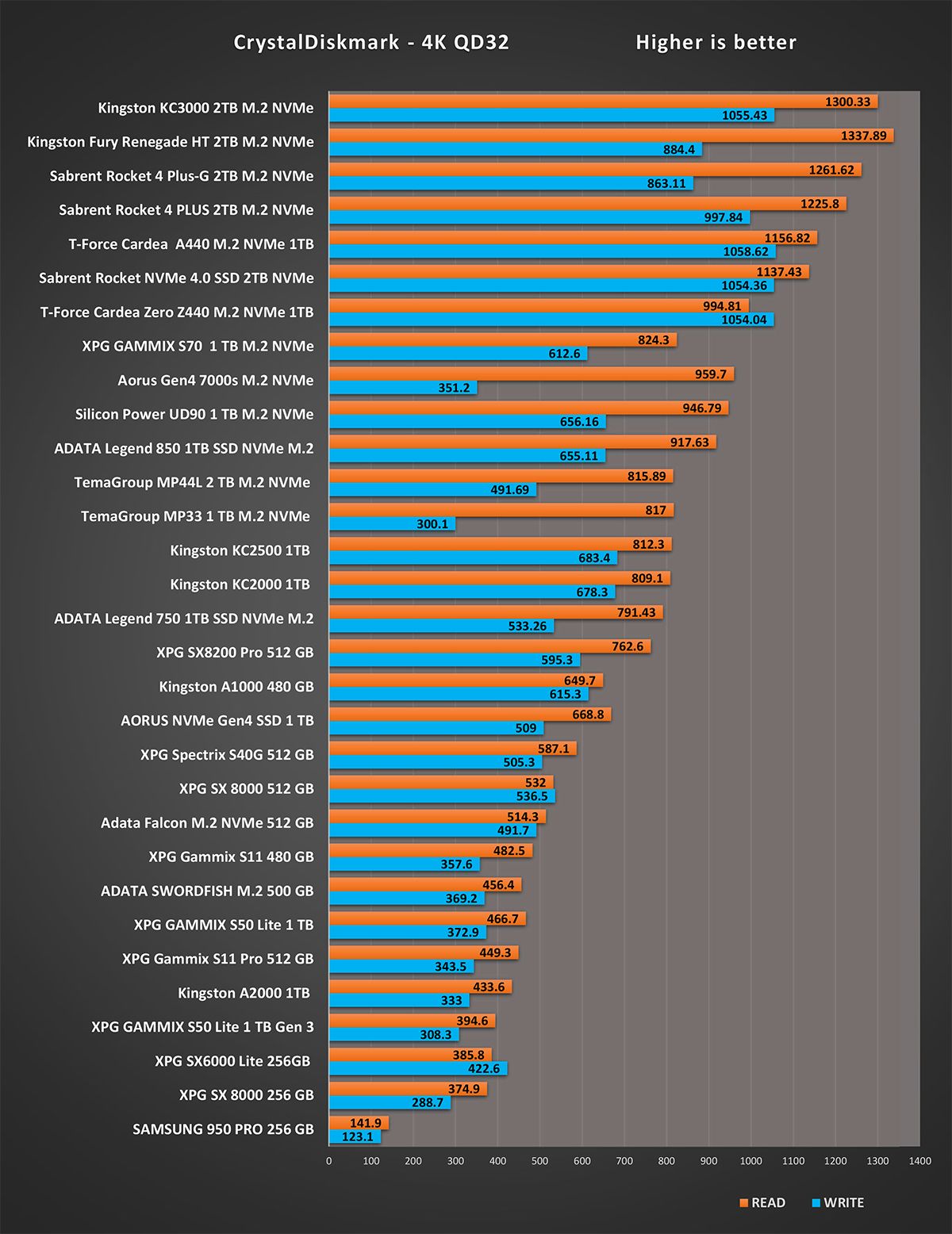 المقارنة الرقمية لاختبار شامل لقرص التشغيل Fury Renegade و تقييم النتيجة الكلية