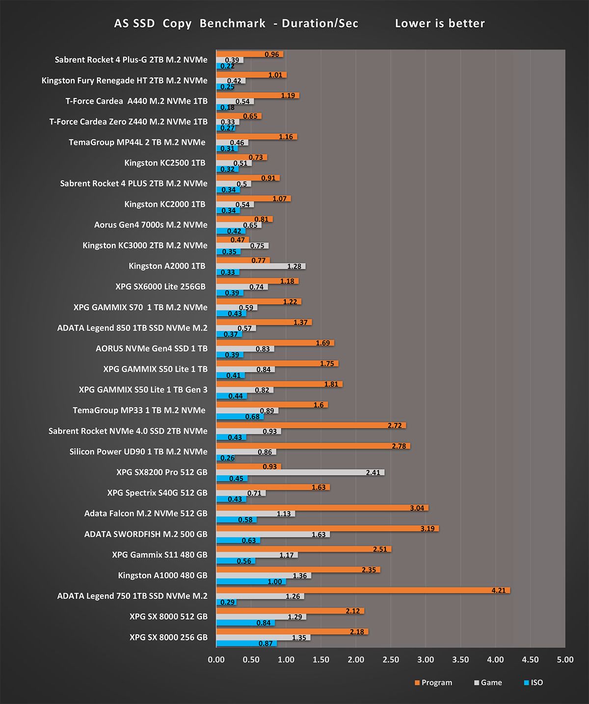 نجد هنا أن Fury Renegade يقدم زمن نقل الملفات المضغوطة بتحقيق 0.25 ثانية و زمن نقل البرامج و الألعاب ممتاز جدا